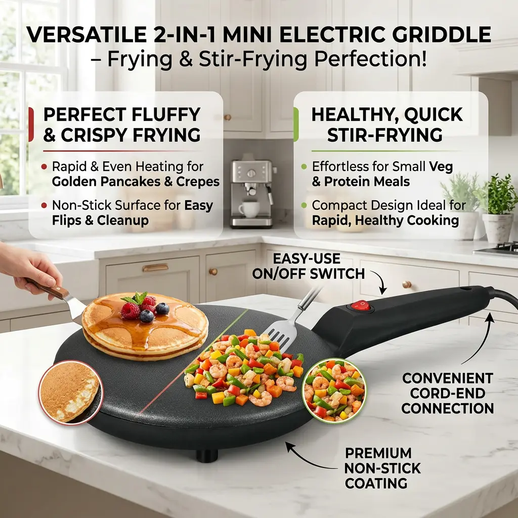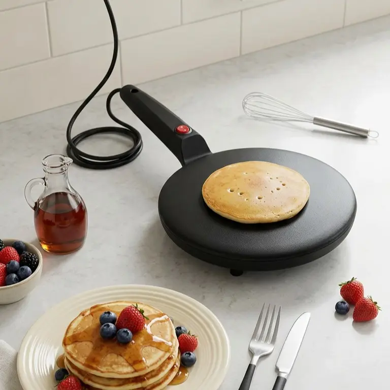 A professional crepe maker and efficient mini electric griddle, effortlessly handling breakfast, light meals, and quick stir-fries. Rapid even heating ensures no undercooked results. Enjoy fluffy, crispy pancakes and golden, tempting crepes with worry-free cooking.
