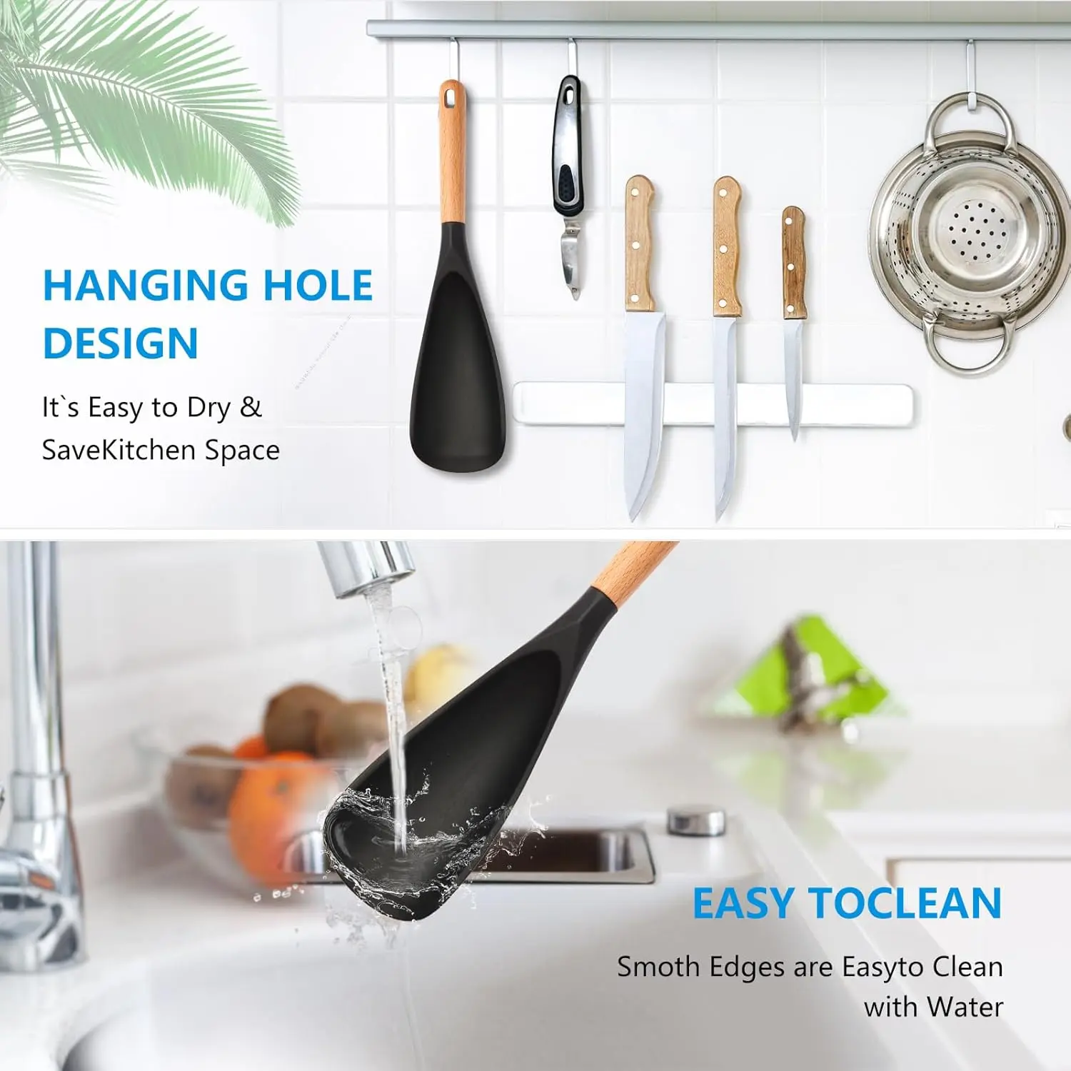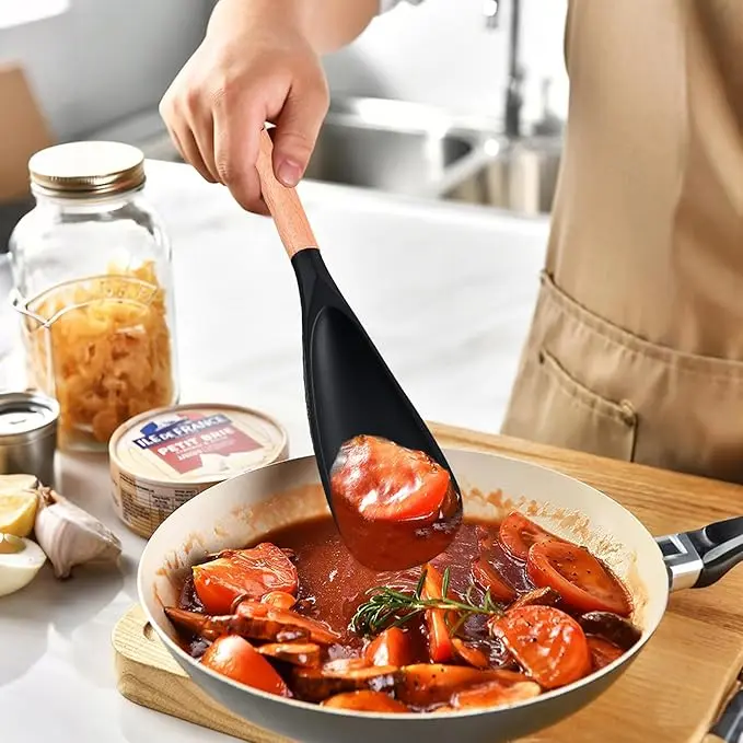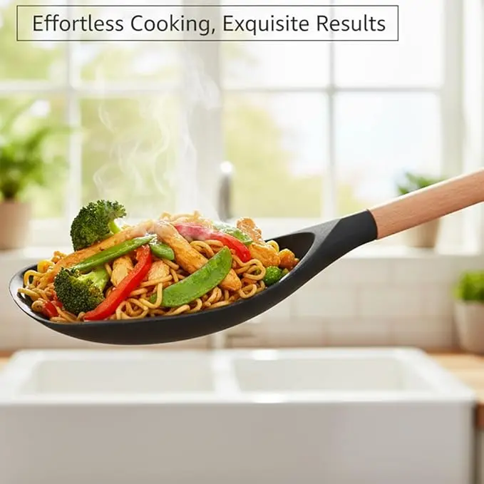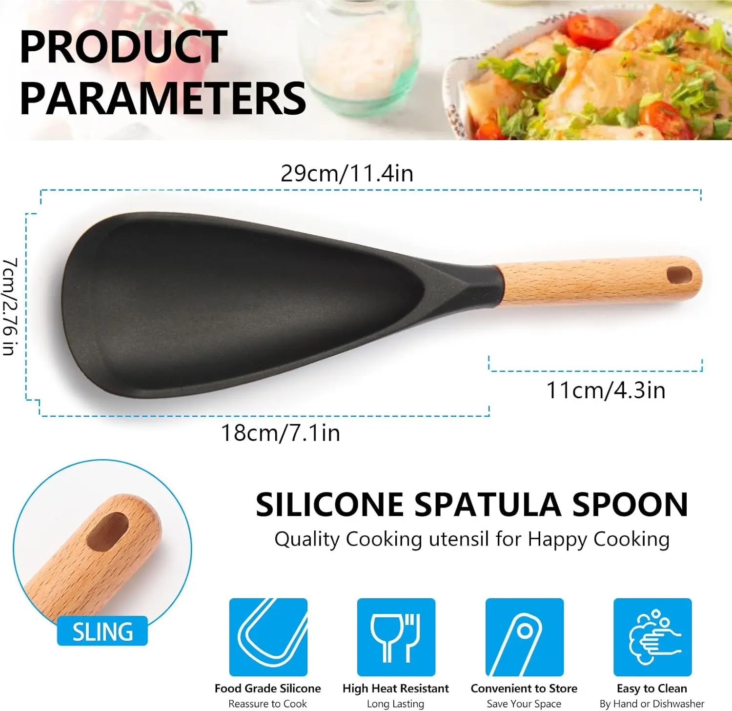 2026 Master Every Kitchen Task with This Multi-Function Silicone Spatula Spoon – Featuring a Heat-Resistant, Flexible Head and a Comfortable Wood Grain Handle, It's Designed to Mix, Scoop, and Scrape Without Scratching Your Nonstick Cookware