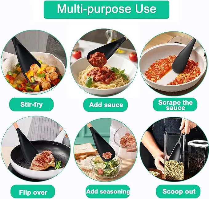 ·DUAL PURPOSE DESIGN: Duck bill shaped spoon that functions both as a serving spoon for soups and as a turner/spatula for flipping and stir-frying food