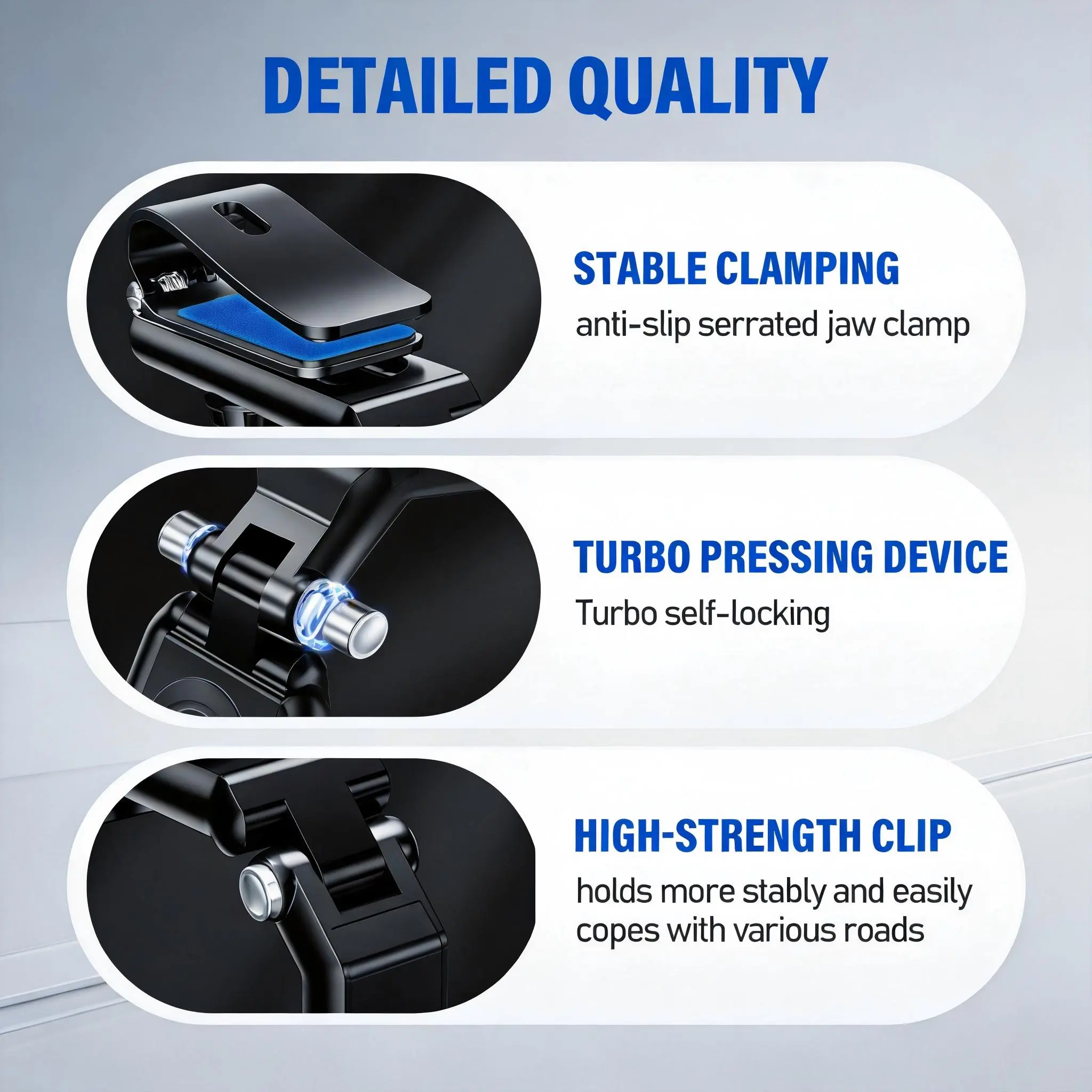 5.The mount is easy to install and secures your device inplace while driving, providing stability on bumpy roads.With this product, you will no longer have to worry aboutyour phone falling or sliding around in your car.