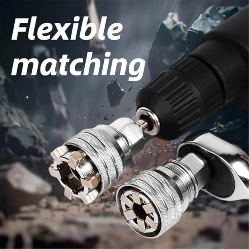 Multi-Function Universal Socket Wrench Tool, Adjustable Universal Socket Wrench, Ratchet Torque Wrench, Power Drill Accessory