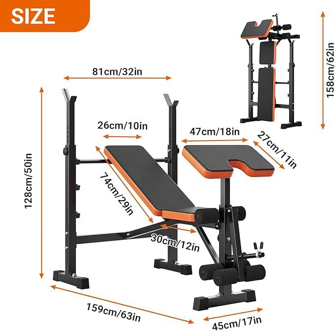 ·FULLY-BODY WORKOUT: Our weight bench set offers a comprehensive range of exercises, transforming into various configurations to suit your diverse fitness needs. Whether you're targeting chest, arms, abs, or legs, this set has got you covered.