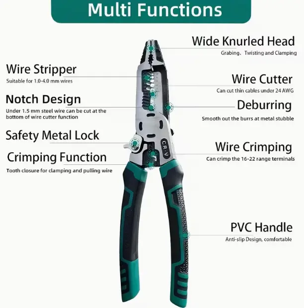 Upgrade your toolbox with this all-in-one multifunctional wire stripper and . Designed for electricians, DIY users, and home repairs, this tool combines multiple functions in one compact design to save time and effort.