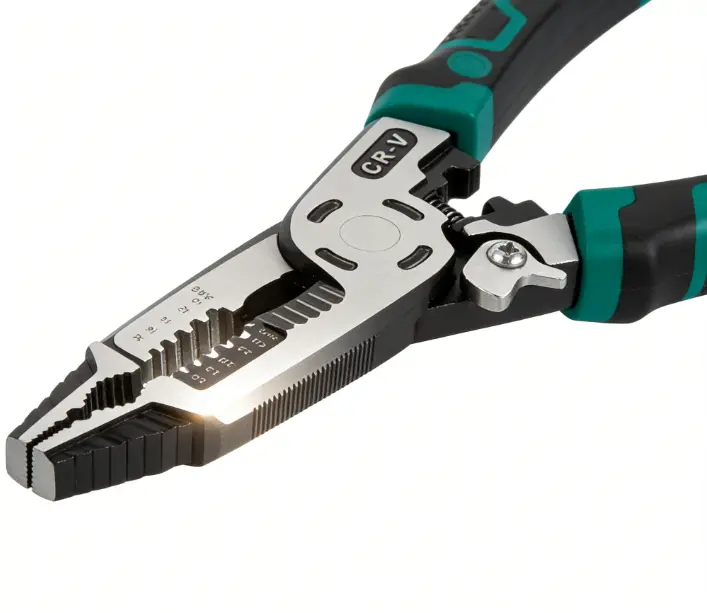 8-In-1 Wire Stripping Pliers Featuring Voltage Detection, a Versatile Hand Tool for Cable Stripping, Cutting, Crimping, And Twisting, in Green Color,Suitable for Professional Use