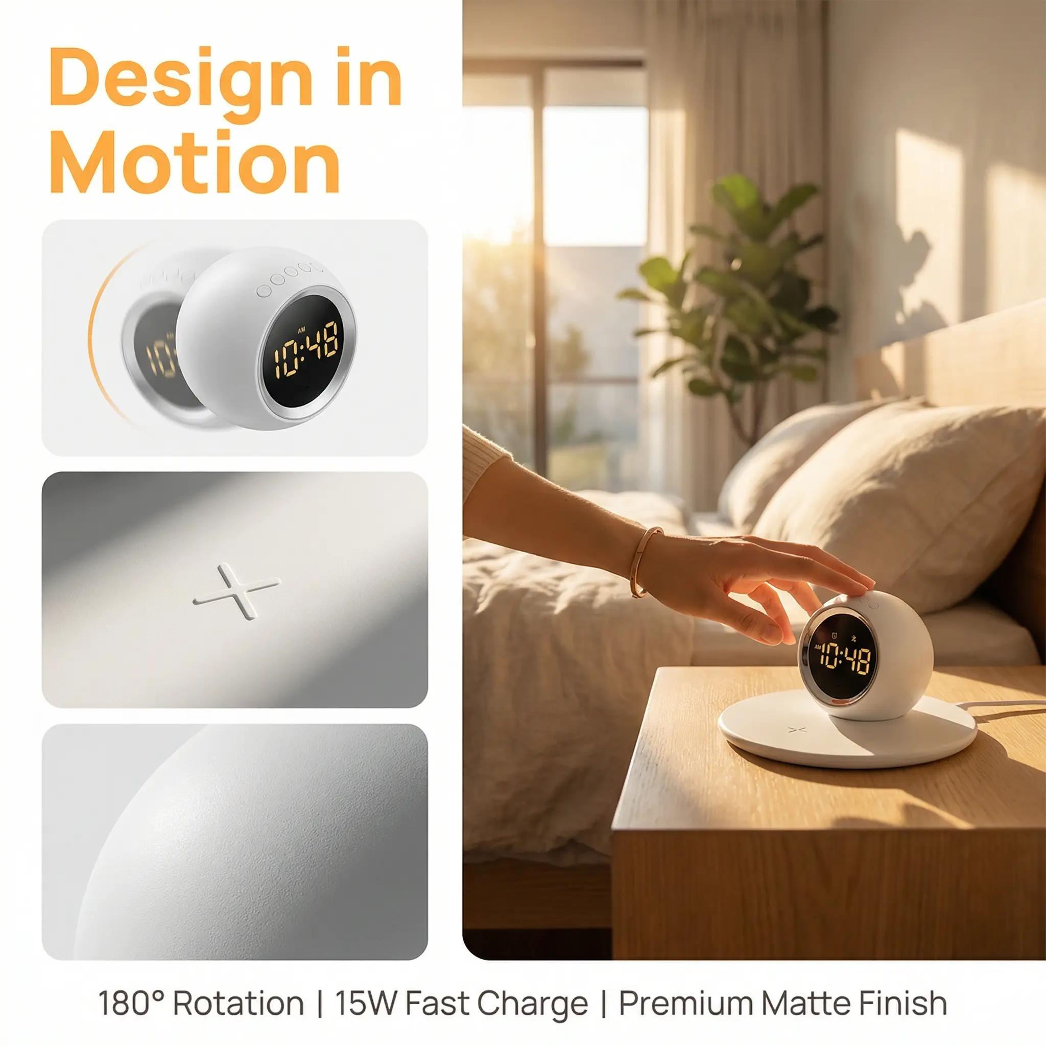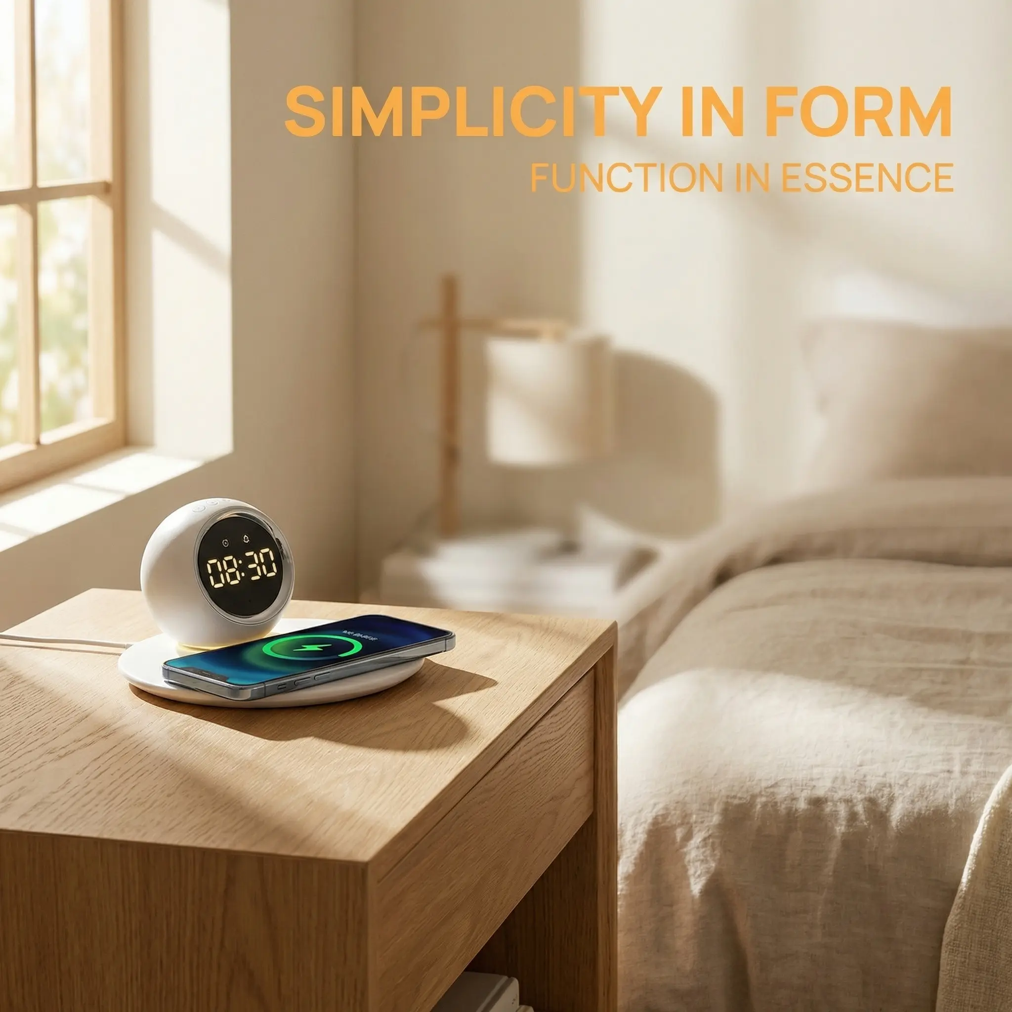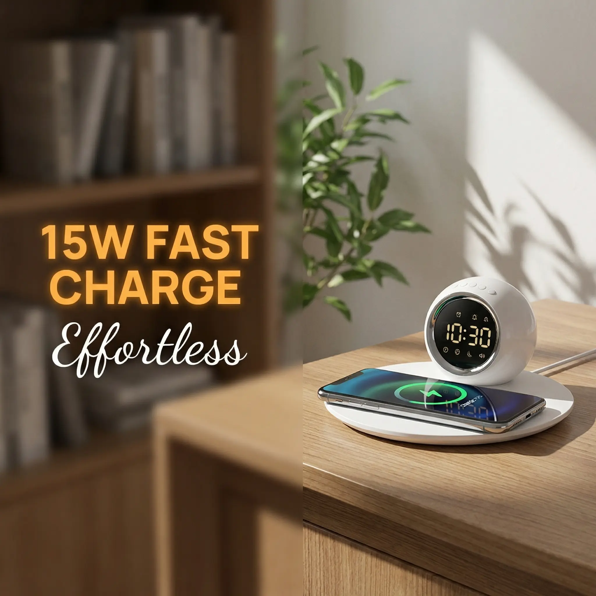 1.All-in-One Smart Integration Combines LED digital clock, alarm, wireless fast charging, and ambient night light in one device. Sleek cream design blends into any home style while saving space.