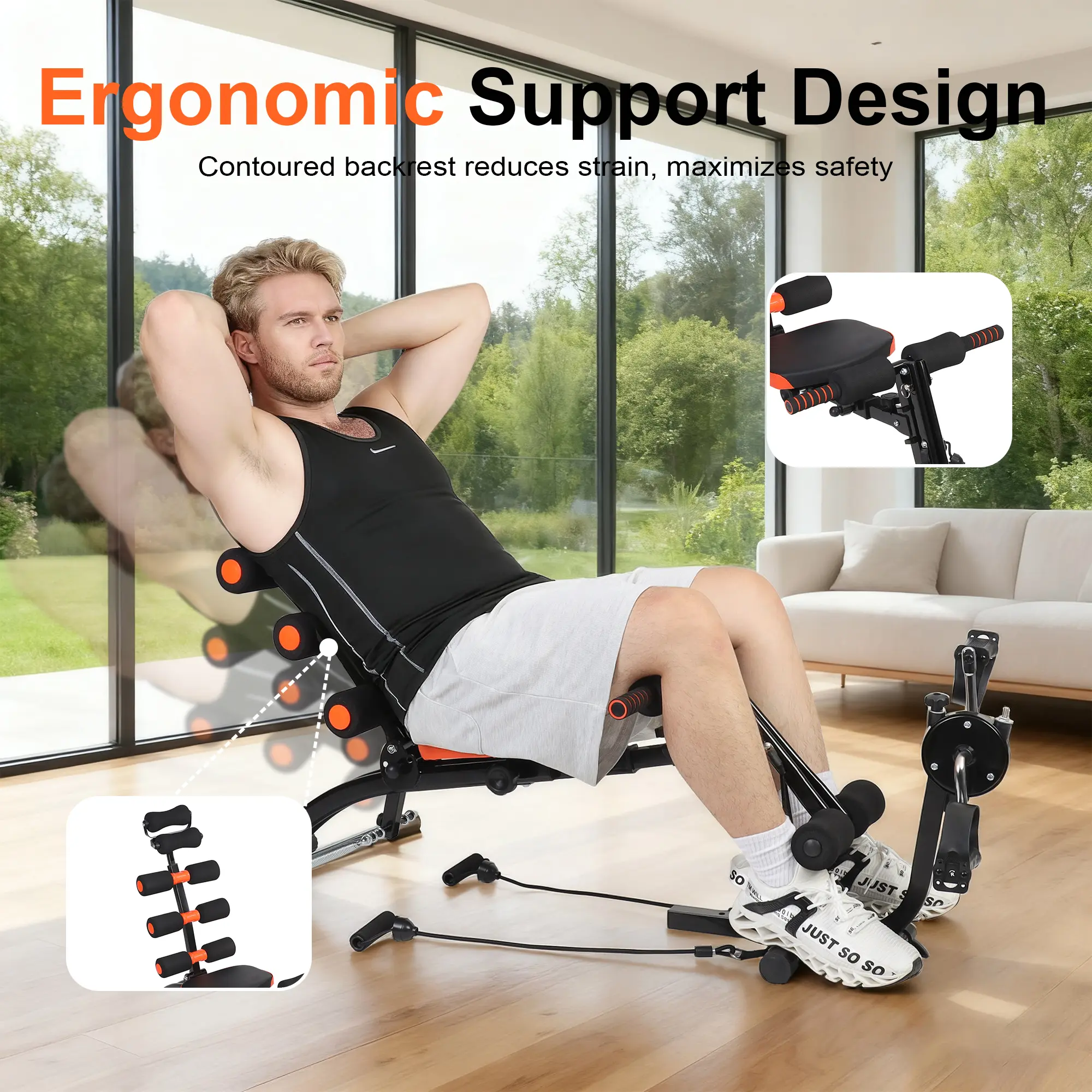 ·Total-Body Support & Lock-In Security: Extra-padded leg rollers and a secure lock system keep you firmly anchored without pinching or strain, ensuring all effort is focused on your core.