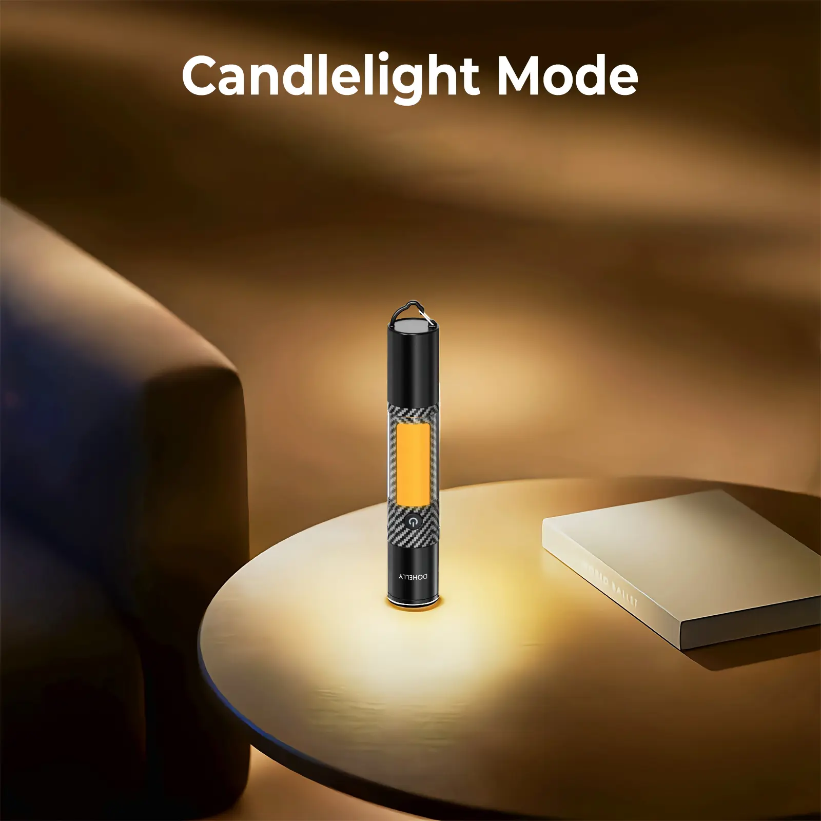 【Alarm and Warning Mode】In emergency situations, the flashlight's 5-level side LED lights (high brightness, fog light, candlelight, colorful light, and flashing SOS signal light) help you quickly escape danger.