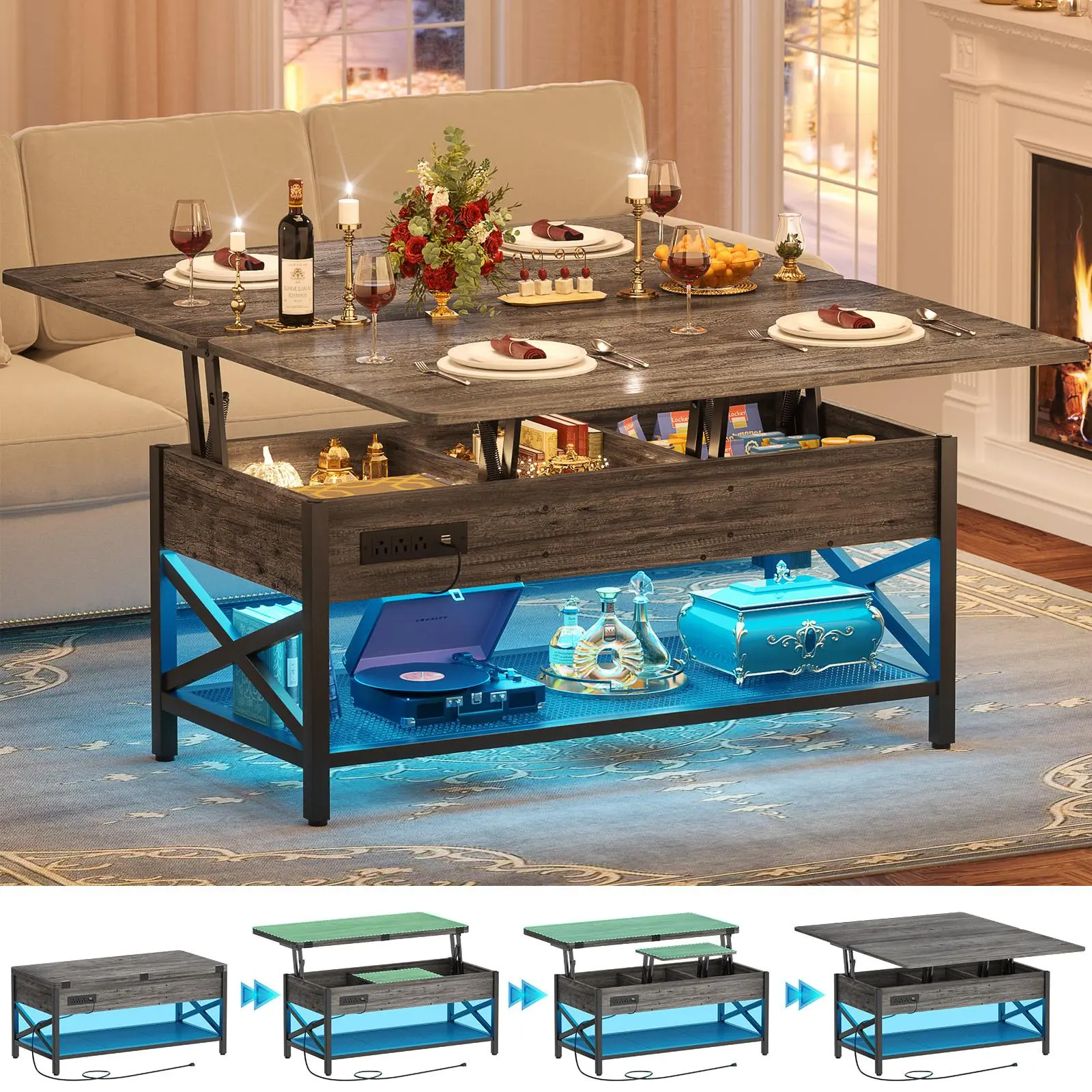 ·【Ample Storage and Sturdy Constructions】The lift-top surface hides 3 storage areas and 1 open shelf. Additional open shelf provides the perfect place for you to display exquisite decorations. Expand your available storage space. With a high-quality metal support mechanism, wooden construction, X Support and rigid metal frame, durable, stable, and won't shake or tilt during use. Fully expanded size: 42" x 39" x 26.6''. Caution: Lower table must be raised first to avoid damage.