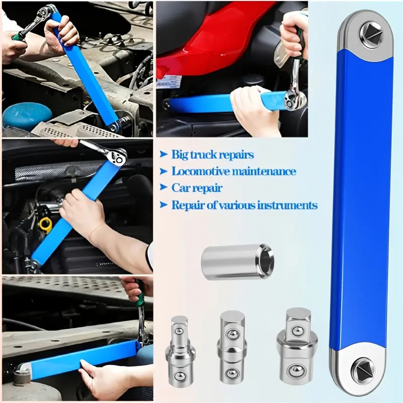 1Set Multi-Functional Extended Wrench,Extended Wrench Booster Lever Kit,Dual-purpose Ratchet and Quick Socket,Ratchet Conversion,Universal Tool for Car Maintenance, Automotive Repair Tools