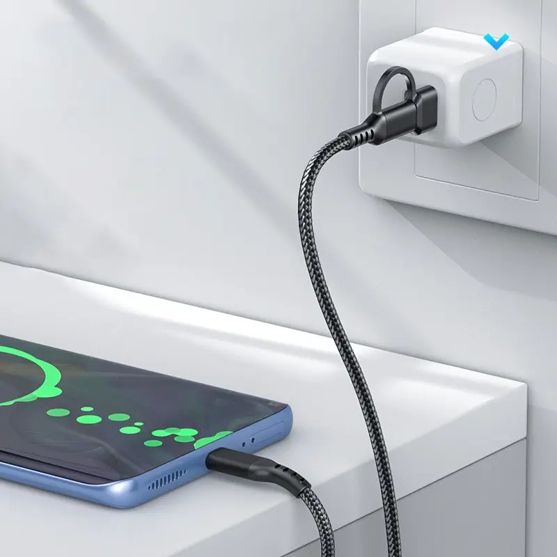Multi-functional 2-in-1 fast charging data cable, 2M long, made with high-density nylon braided cable body and metal casing design, compatible with USB-C, Type-C-C, iPhone/15/16/Samsung/Galaxy/tablets/laptops, allowing fast charging for multiple devices,