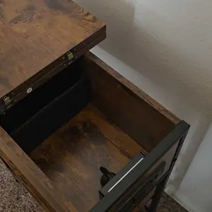 【Ample Storage】The flip-top drawer offers hidden storage, keeping your items private and organized. Three open shelves are perfect for lamps, books, plants, and decor. Plus, an additional fabric storage box helps you store tablets, magazines, remotes, phones, chargers, and other essentials—always within reach and clutter-free.