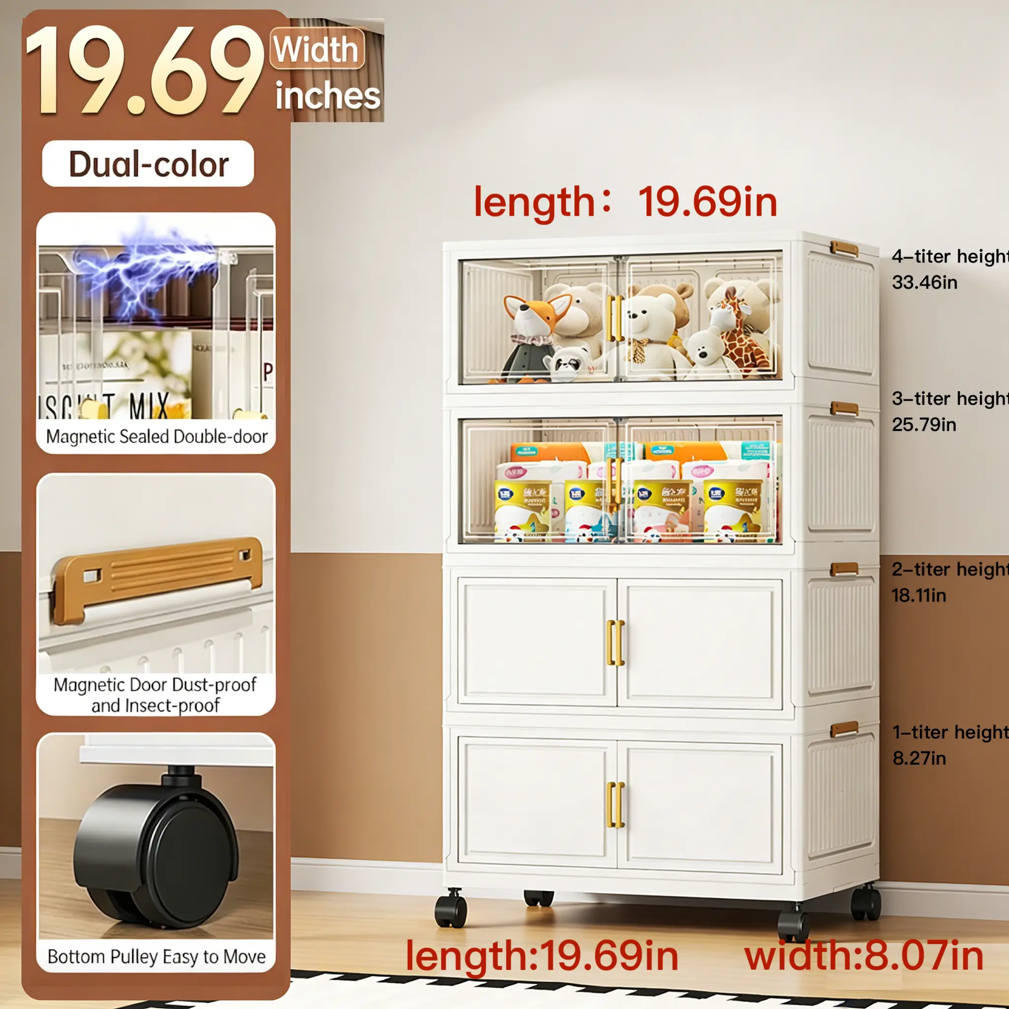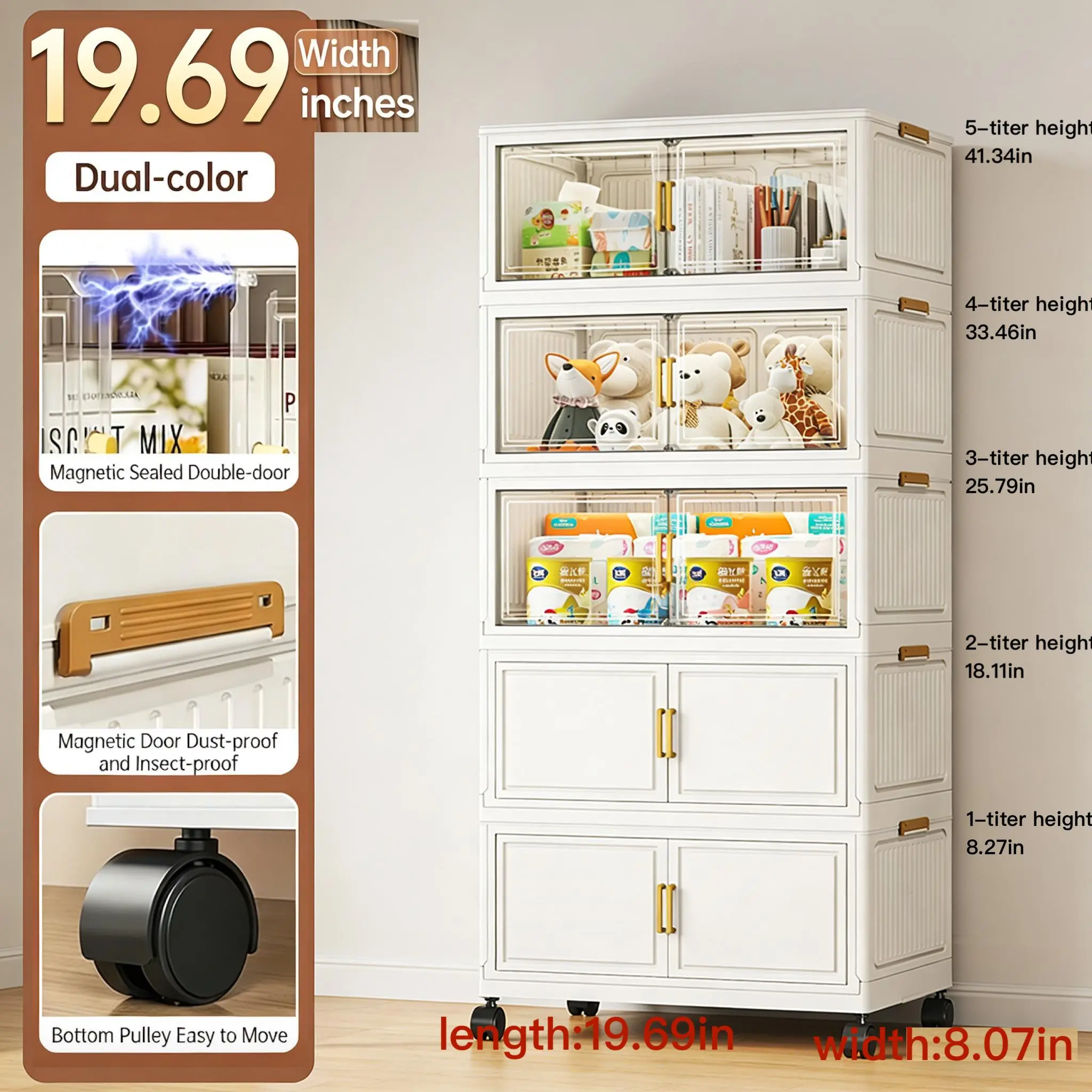 18-inch wide multi-functional 1/4/5-layer folding storage cabinet with wheels, large capacity, magnetic double-door design, suitable for kitchen, clothes, toys, books, etc. storage, perfect storage solution for living room, bedroom, office, storage box