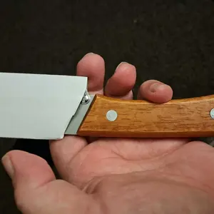 ERGONOMIC WOODEN HANDLE: Crafted from solid wood for a comfortable, non-slip grip. The contoured shape fits naturally in your palm, reducing hand fatigue during prolonged use. Perfect for meal prep without the strain.