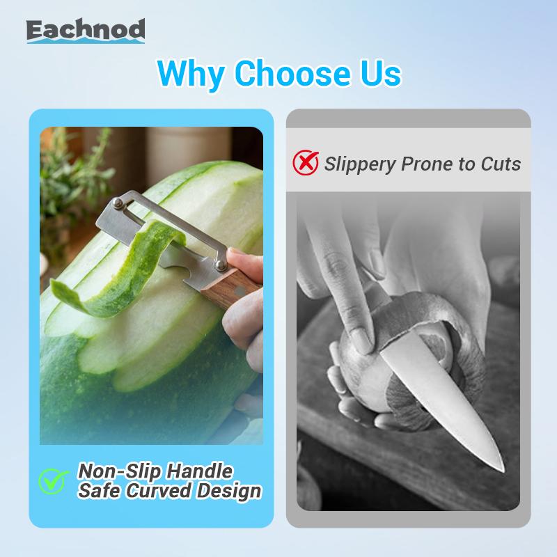 RAZOR-SHARP BLADE: Engineered with precision-ground stainless steel for effortless peeling. Glides through both soft and hard produce, delivering paper-thin, even peels every time. No more jagged edges or wasted flesh—just smooth, professional results.