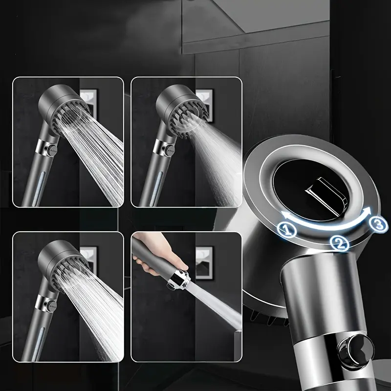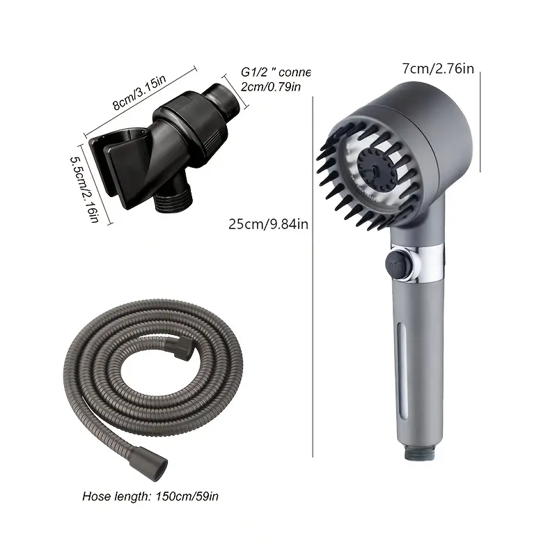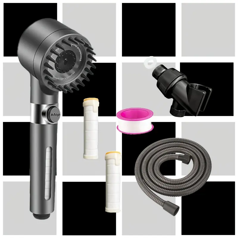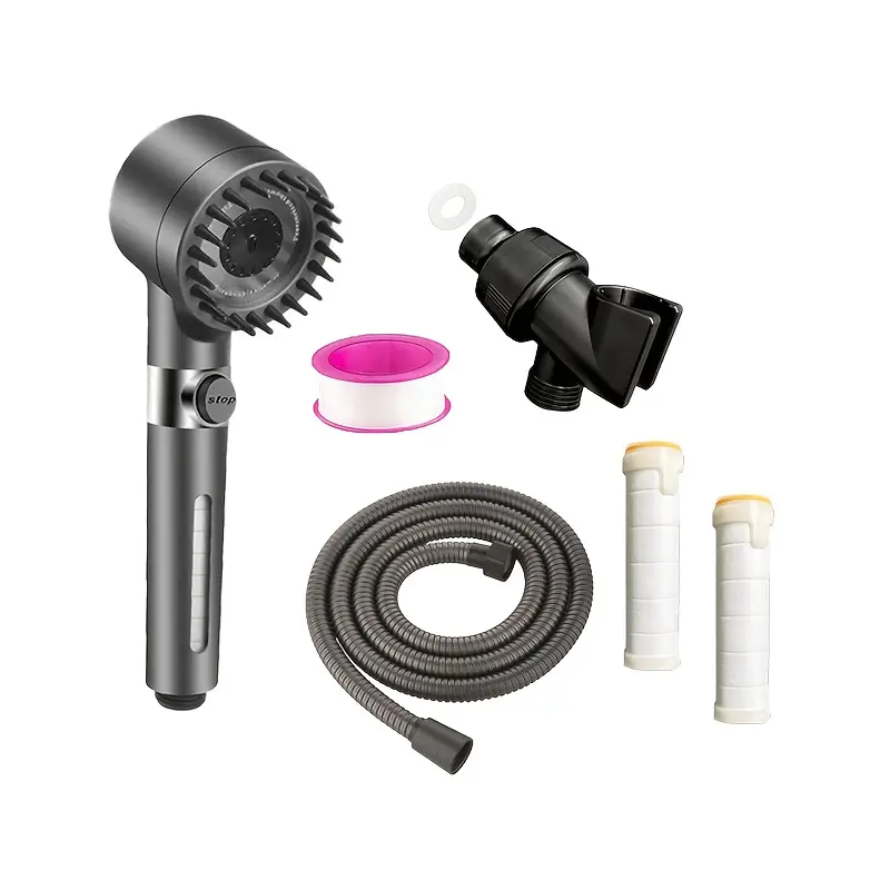 Multi-Functional Handheld Shower Head Set with Scalp Massager, 4 Spray Modes, 1.5m Encrypted Hose, Removable Showerhead Kit, Water Softening, Quick Spray Gun Conversion, French Country Style, PVC Material, Includes 2 Filter Cottons & Washer