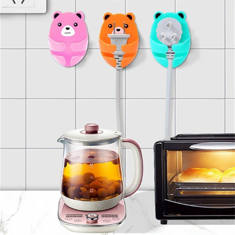 5. Multi Functional Hooks, 4 Counts/set Cartoon Hug Bear Non Drilling Adhesive Hook, Plug Hook, Power Socket Holder, Kitchen Bear Plug Storage Hook Wall