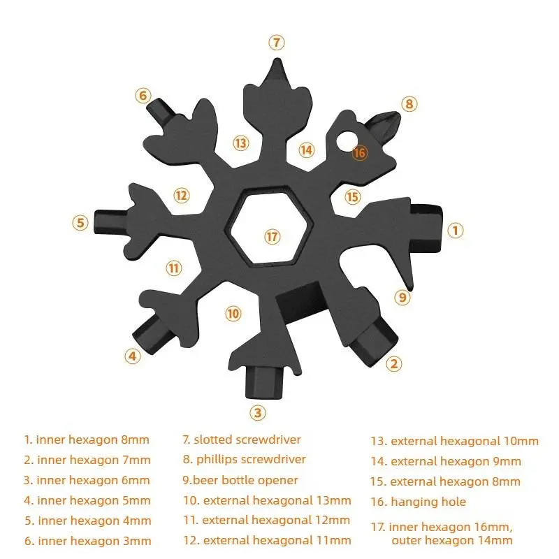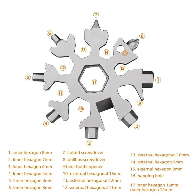The snowflake design adds a unique touch to this keychain wrench. A practical and stylish choice. 🎨
