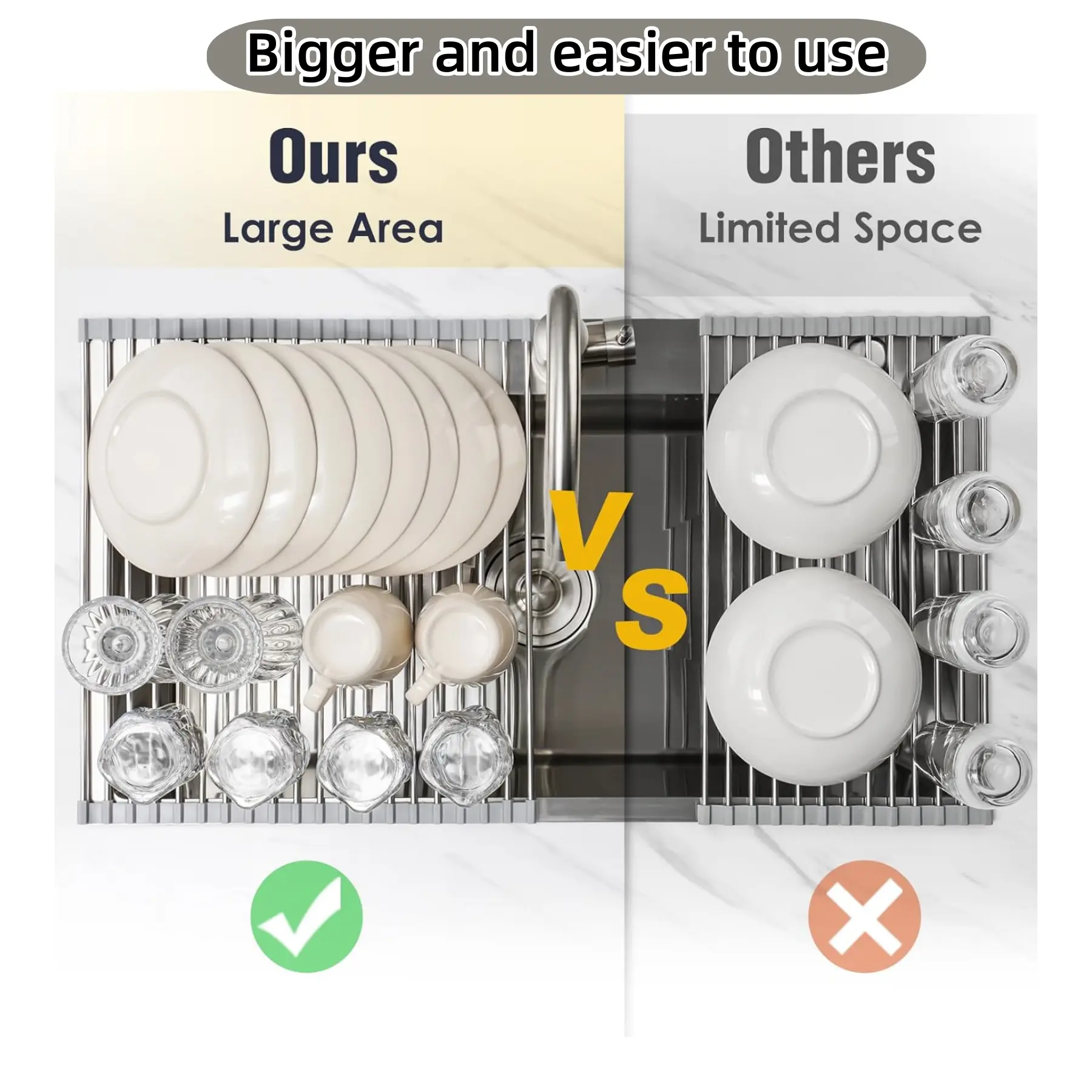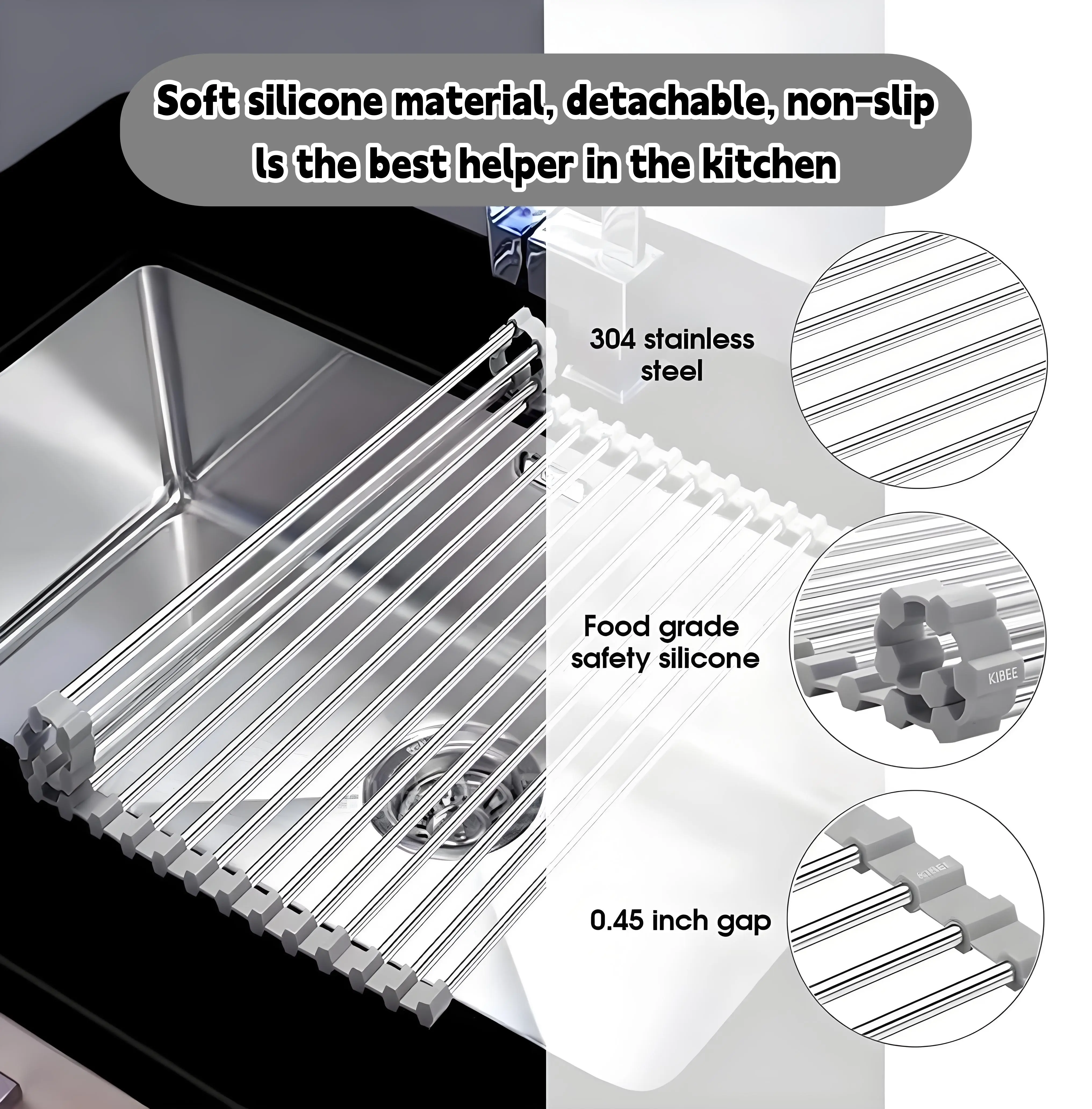 The flexible roll-up design allows for easy storage in a cabinet when not in use or can be laid flat over the sink or countertop. It keeps your kitchen organized and maximizes counter space, ideal for apartments and small kitchens. 🏠