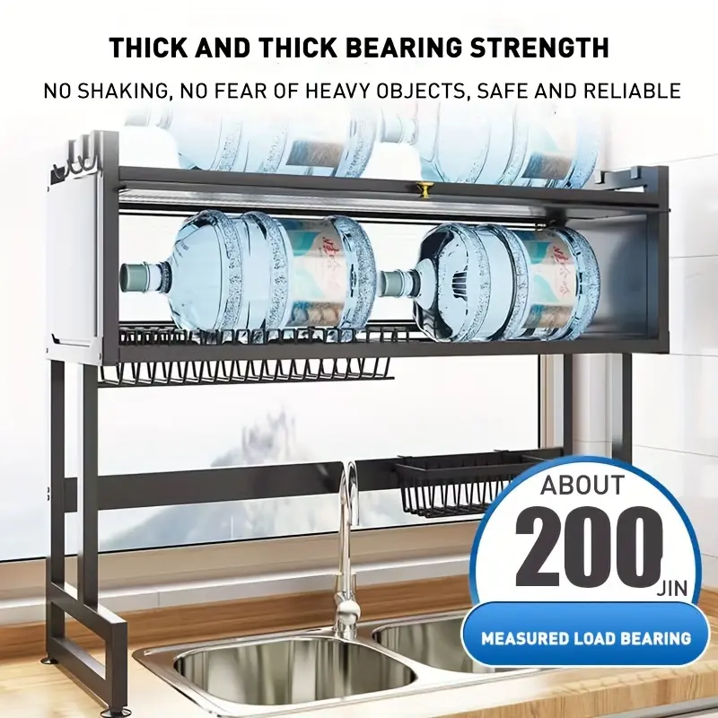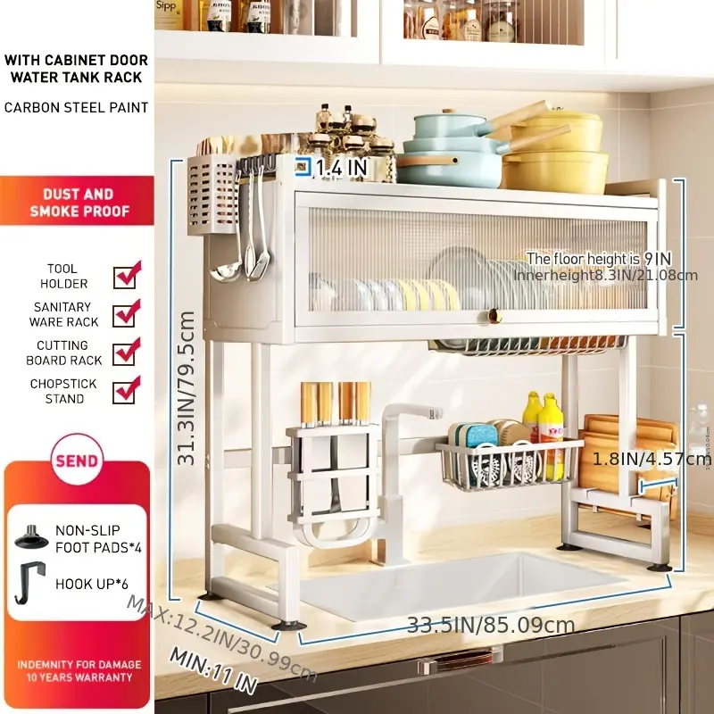 Multi-Functional Kitchen Storage Rack with Cabinet Door Access - Black Metal Countertop Organizer for Dishes, Utensils, and Cookware with Drain Tray, Towel Holder, and Spice Shelf, Sink Storage Solution Functional Kitchen Accessory