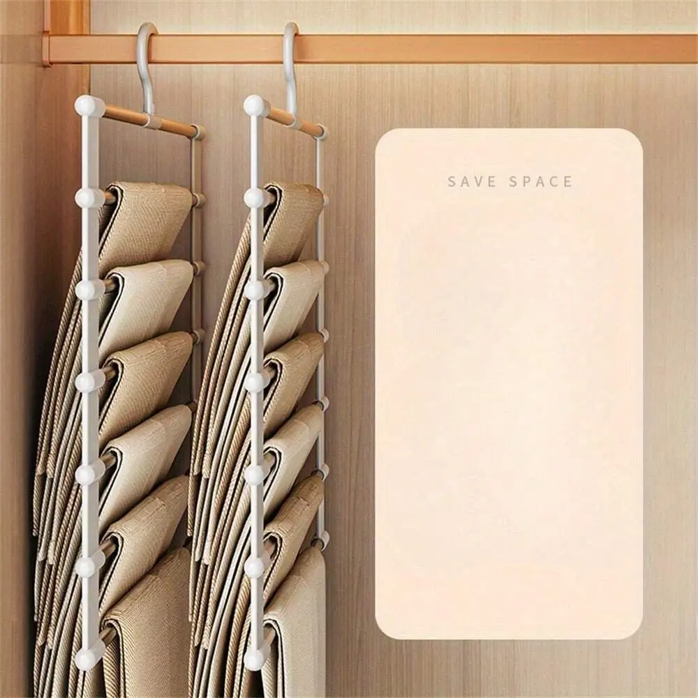 1pc Multi-Functional Portable Storage Clothes Hanger, Pants Hangers - Versatile Ladder Hanging Pants Organizer For Space-Saving, Ideal For Dress Pants, Jeans - Stainless Steel Clip Design For Non-Marking Storage - Perfect For Spring And Summe
