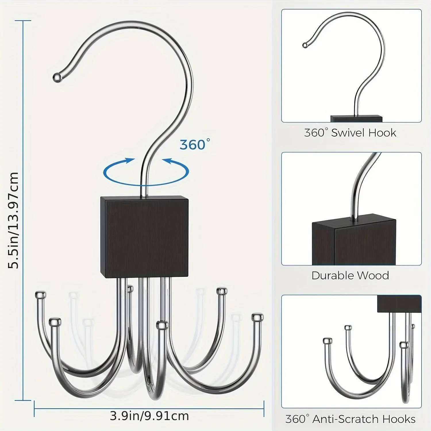 multi-functional rotating 6 hook hangers: coats, hats, scarves, wardrobe storage and finishing - door hooks - bag storage hooks - polished wooden surfaces, multi-purpose hooks