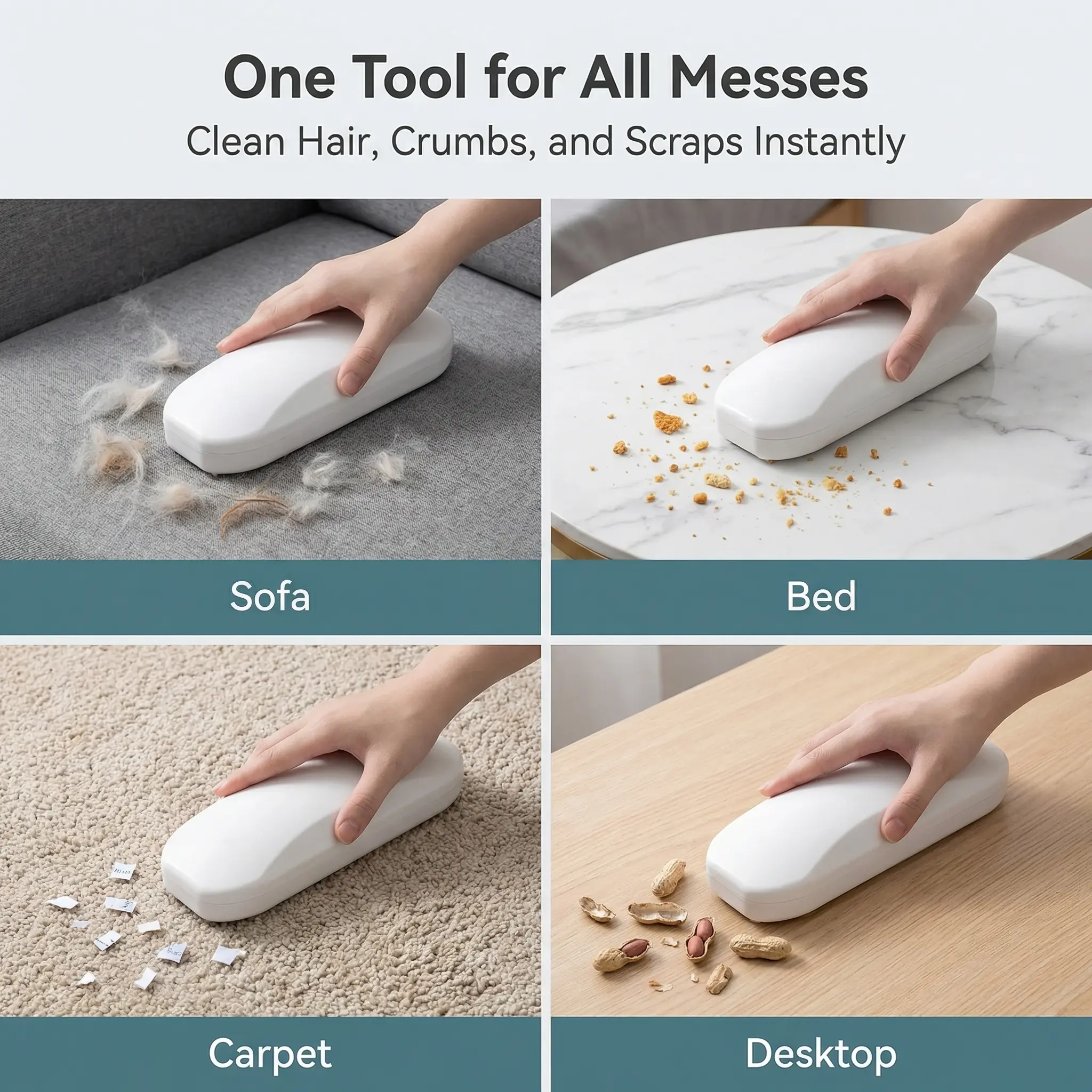 ✨ This crumb sweeper is perfect for cleaning tabletops, bed sheets, clothes, sofas, carpets, and mats. It's an essential and practical home cleaning tool. Ideal for maintaining cleanliness in various areas of your home.The soft, skin-friendly bristles are tight and neat. They don't damage objects and can be used confidently. Clean dirt, sand, and debris from sofas, work surfaces, beds, and office desks.