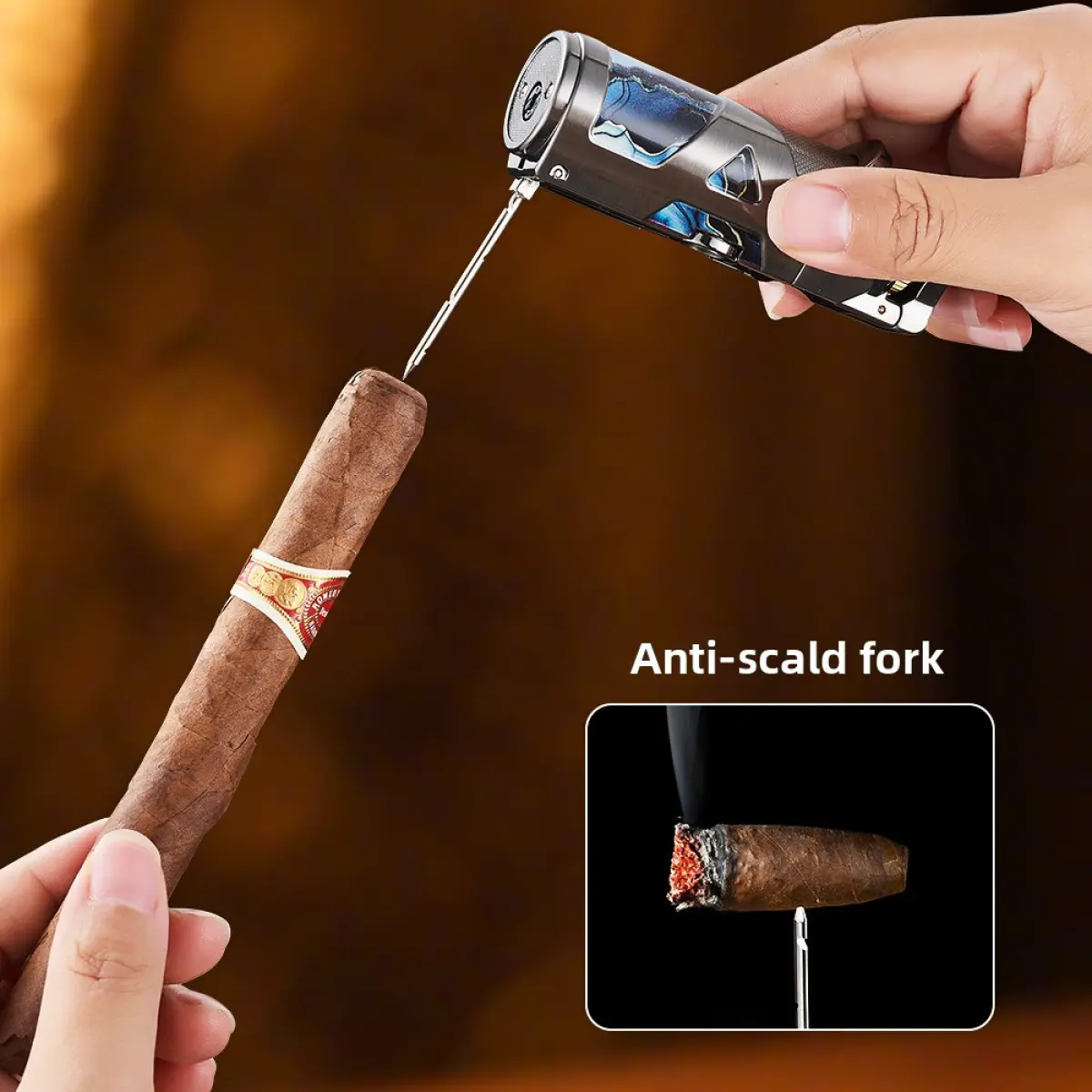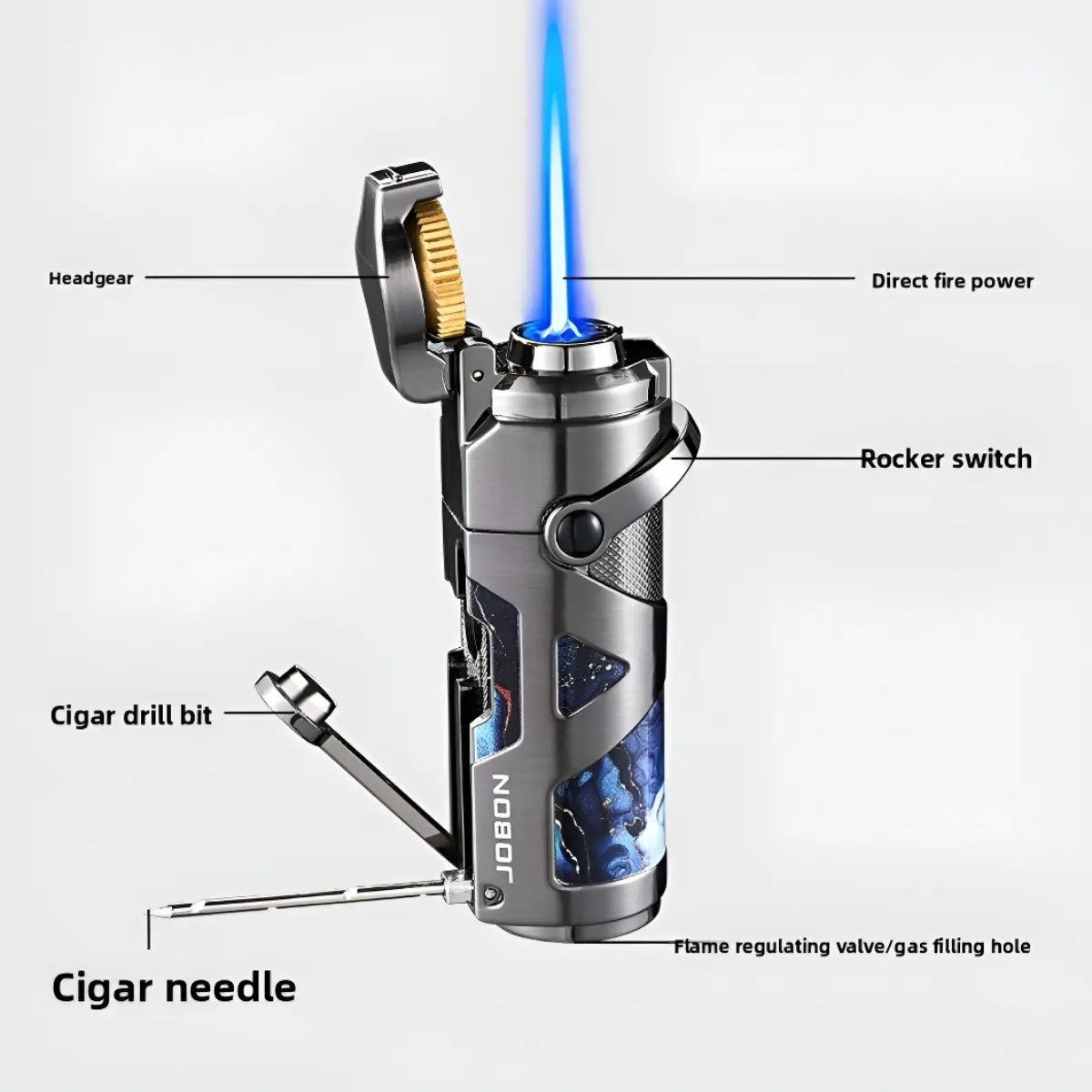Excellent design. Punch & spike built in features. Excellent sparking - fired up on the first pull after I filled it with butane. Note: the inckuded flame control key fits the same slot where the butane is inserted into the lighter.