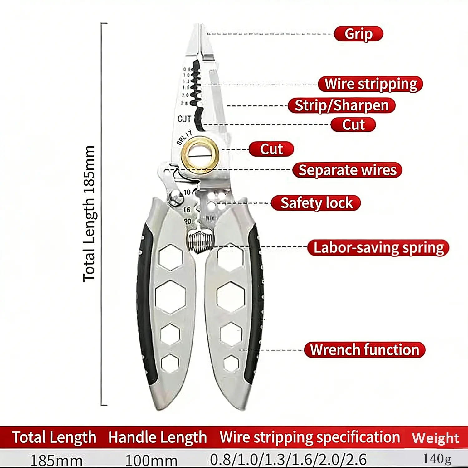 Multi Functional Wire Stripper 7 Inch Electrician Wire Stripper Tool