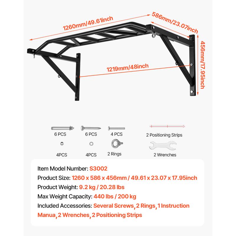 • 440LBS Carbon Steel Frame: This pull up bar is constructed with heavy-duty carbon steel, 1.4mm thick powder coating, rust and corrosion-resistant. Max weight capacity is 440lbs, ensuring security and stability for home and gym use