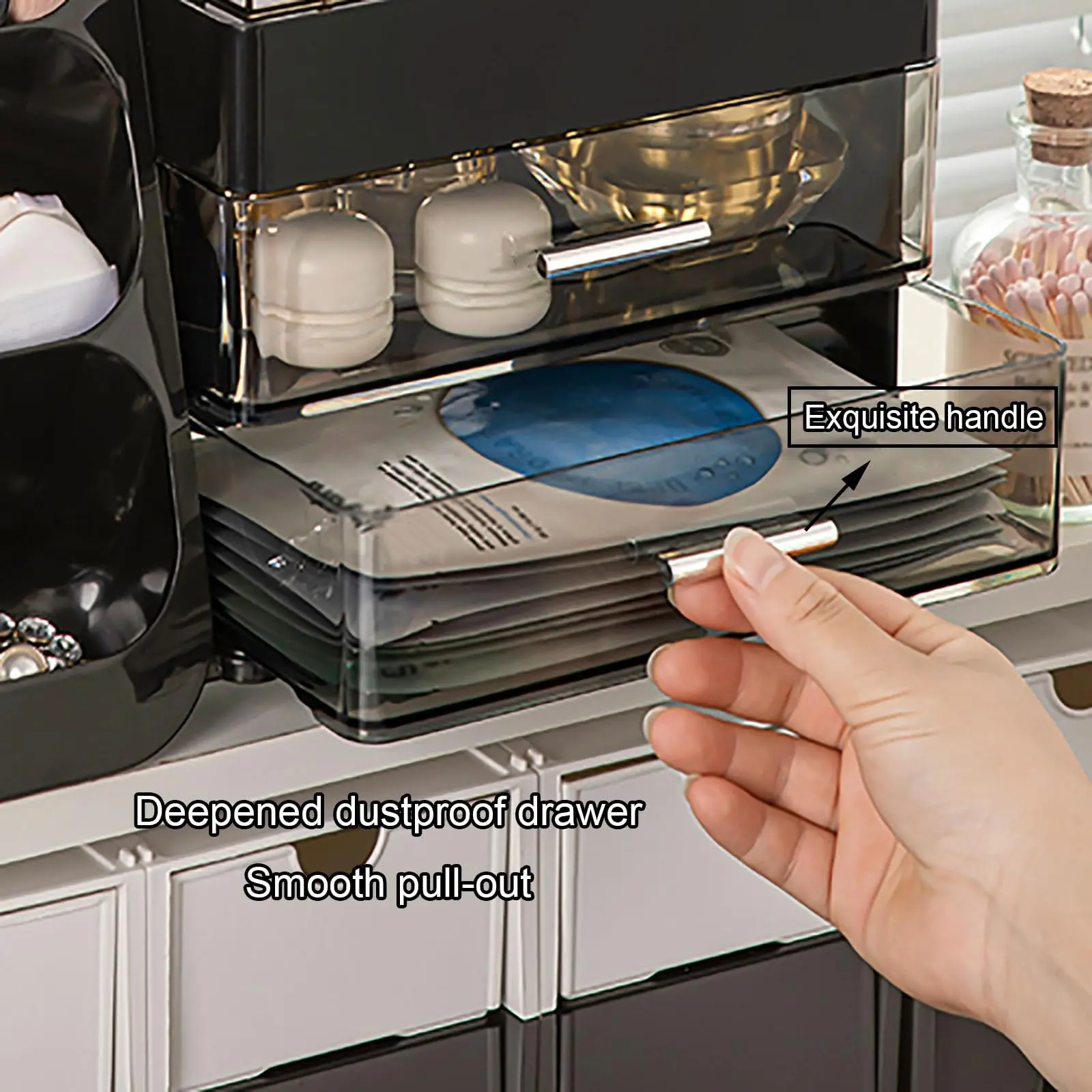 Large Capacity Makeup Storage Box Multi-functional Organizer for Brushes Lipstick Eyebrow Pencil Pocket Mirror Home Travel Cosmetics Accessory Clear Drawer Gift Jewelry Pink Slot Holder #vanitymakeup #makeuporganizer #makeupkit #makeupdesk #dresserstorage #cosmeticcase #makeupkitmusthaves #makeupvanityideas #nailpolishorganizer #womenvanitycabinet