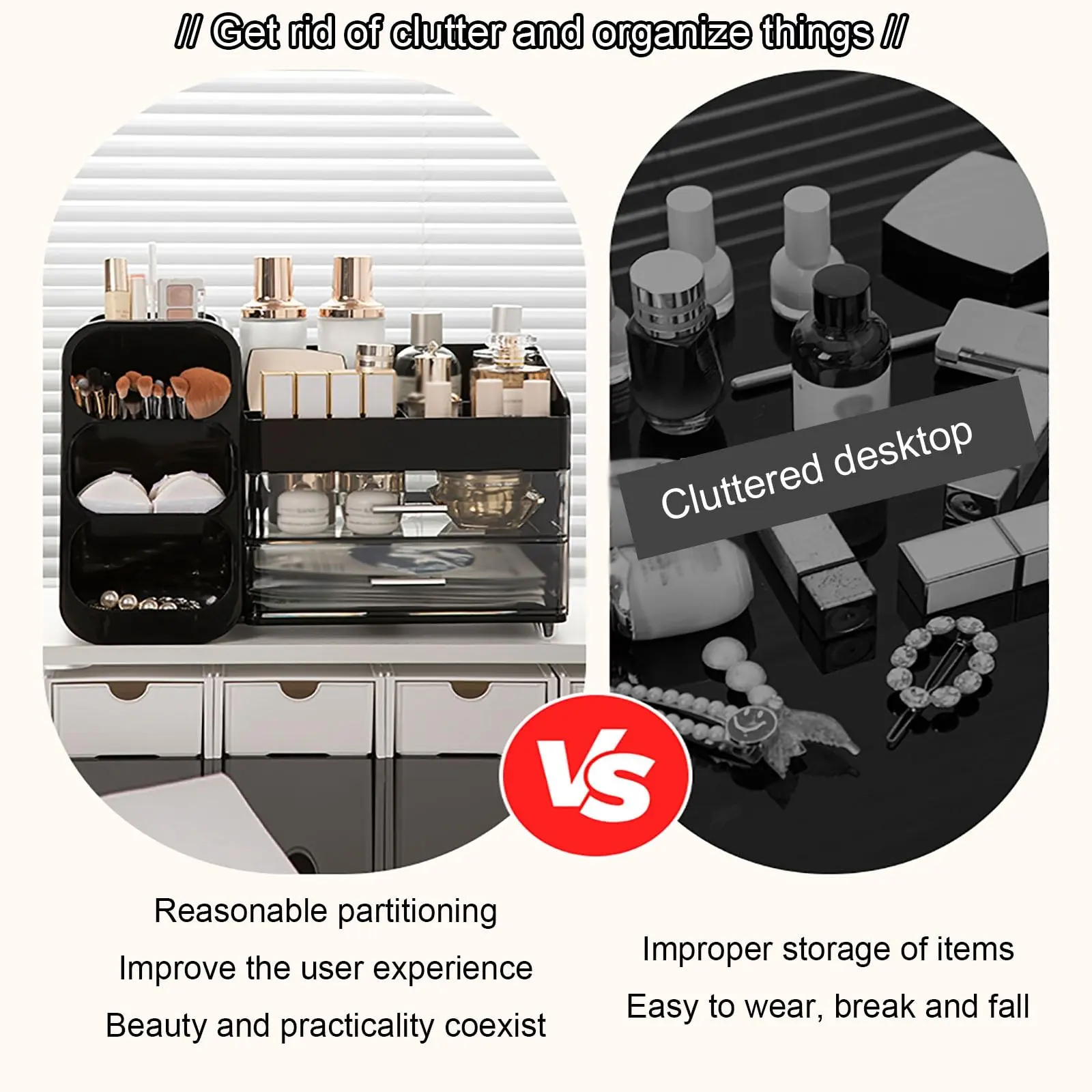 Large Capacity Makeup Storage Box, Multi-functional Makeup Brush Lipstick Eyebrow PencilPocket Mirror Storage Box, Desktop MakeupOrganizer for Home & Travel, Makeup Box,Cosmetics Organizer Storage, Accessory Drawer, Gift, jewelry organizer durable