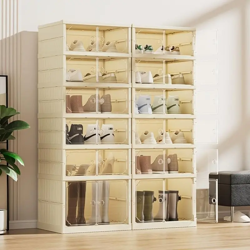 Multi-Layer Foldable Shoe Box, Dustproof Thickened Plastic, Sneaker Shoe Storage Box, Stackable Cabinet, Transparent Organizers Rack