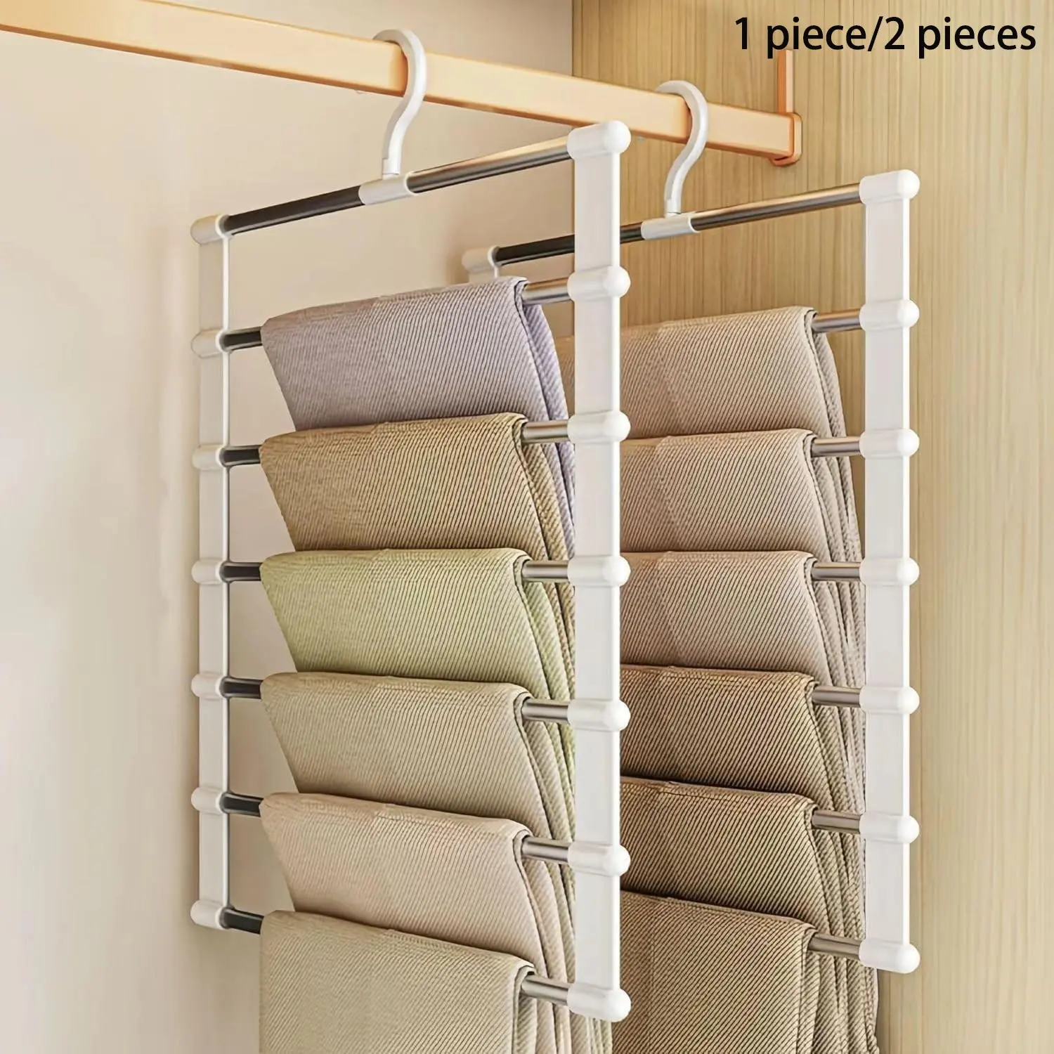 【Space-Saving Design】: Multi-layer hanger maximizes closet space, providing ample room for organizing pants and clothes.