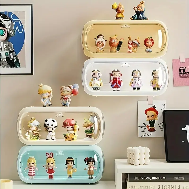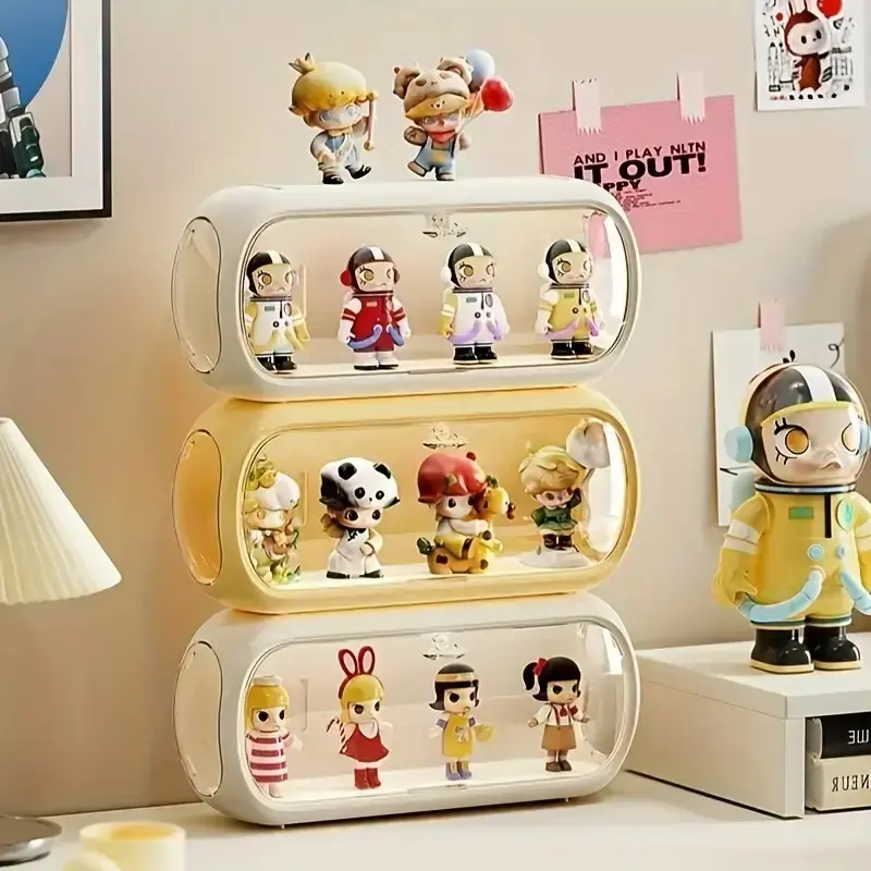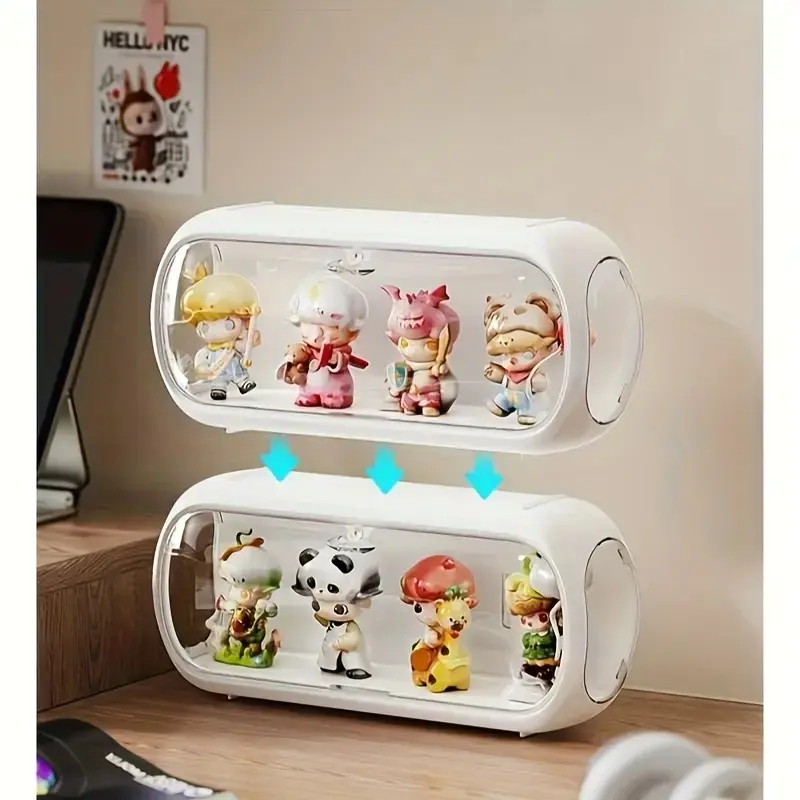 Multi-layer Stackable Collectible Display Box - Transparent Dustproof Acrylic Storage Box with Safety Compartments, Space-saving Organizer for Dolls, Figurines, Model Toys, and Collectible Items (White/Blue/Yellow), Doll Storage Display Cabinet