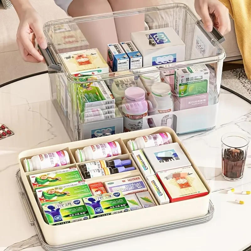 Storage Storage Box With Handle Multi-layer Design Capacity Plastic Storage Organizer Portable For Bedroom Bathroom Office Or Desk Storage Multiple Models Available