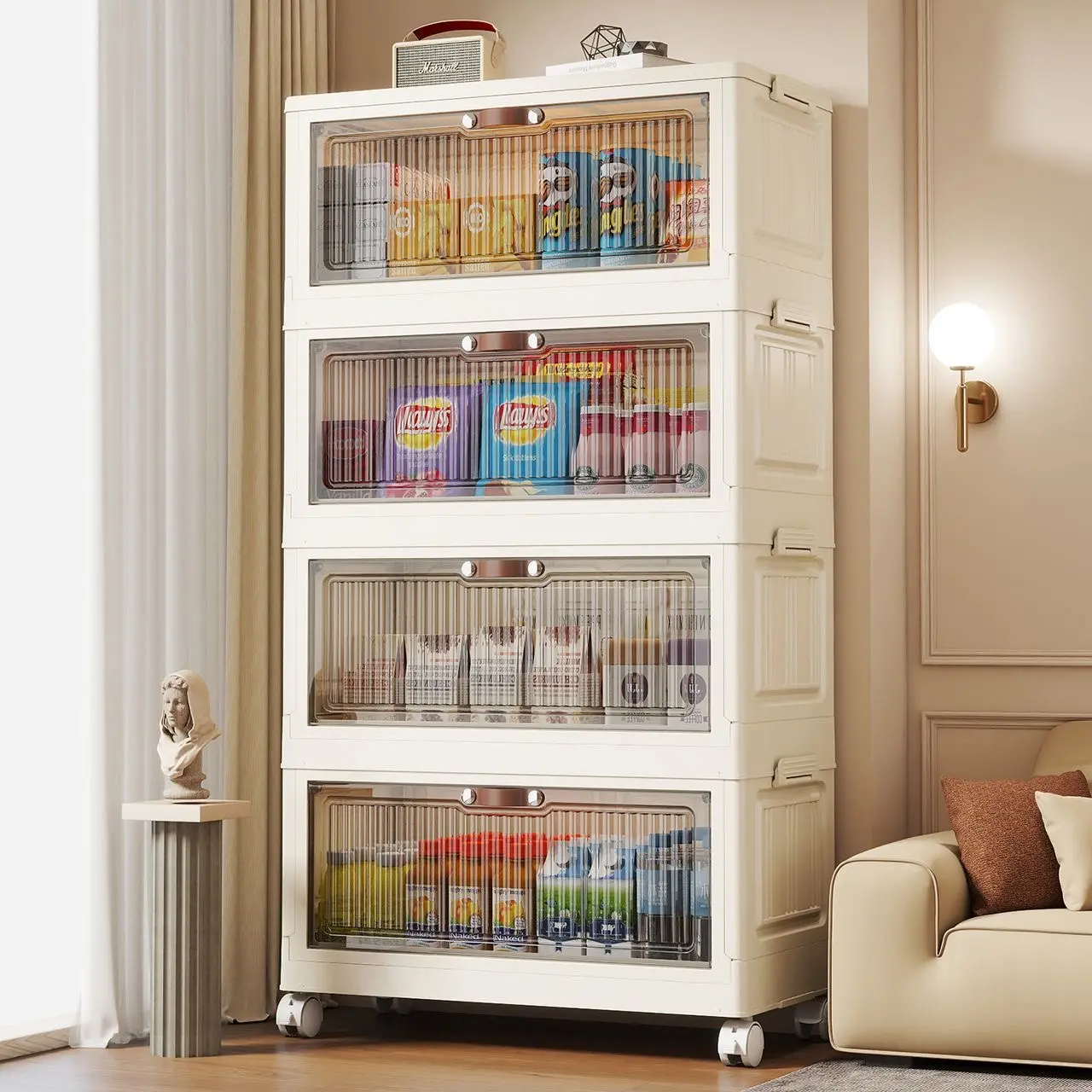 Multi-Layer, Multifunctional Storage Cabinet, Home Organizer Rack, Snack Box Holder, Easy Assembly, Space-Saving Design, Ideal for Kitchen & Living Room