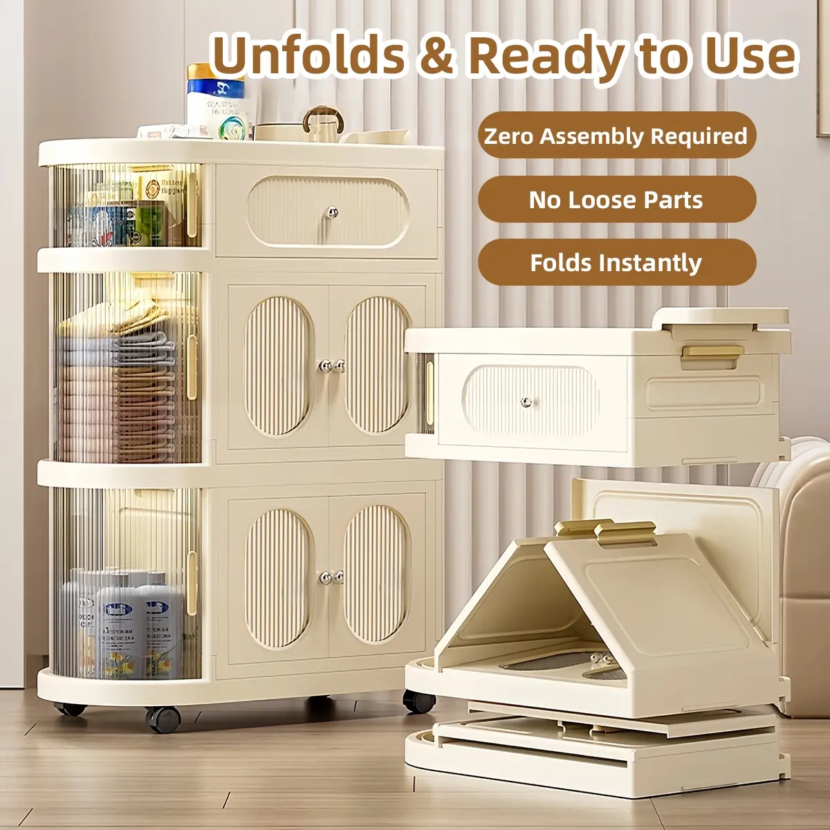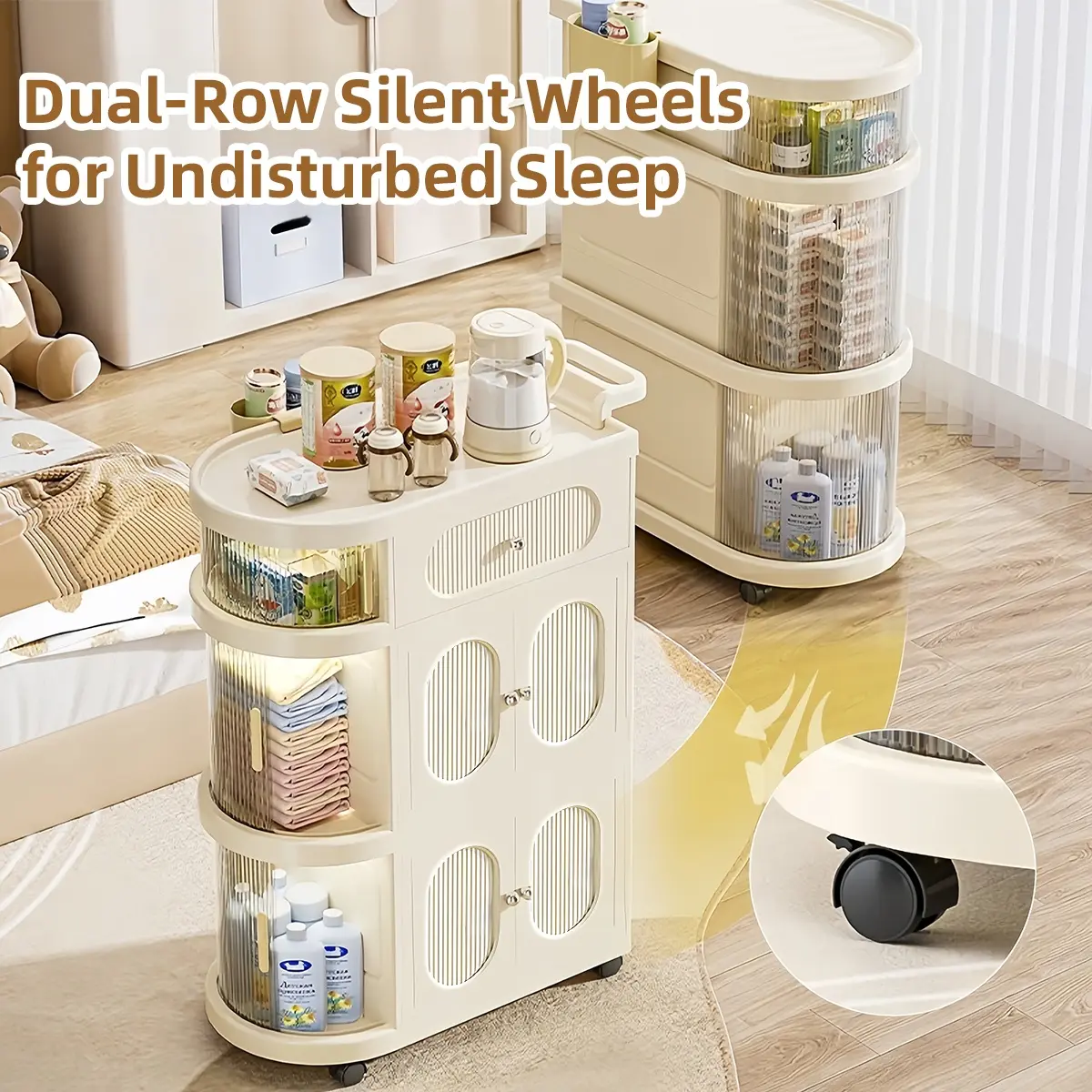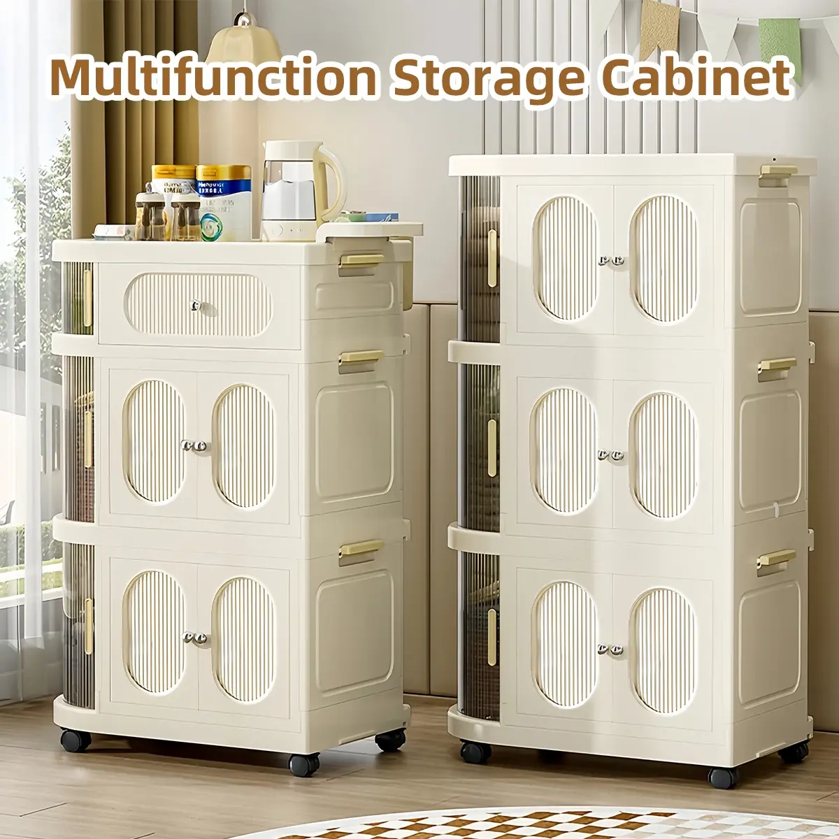 Multi-Layer Slim Storage Cart with Magnetic Doors - Portable Cabinet on Wheels with Handle, Large Capacity Organizer for Toys & Diapers, Foldable Trolley for Kids Room & Hallway, Easy Install Storage System
