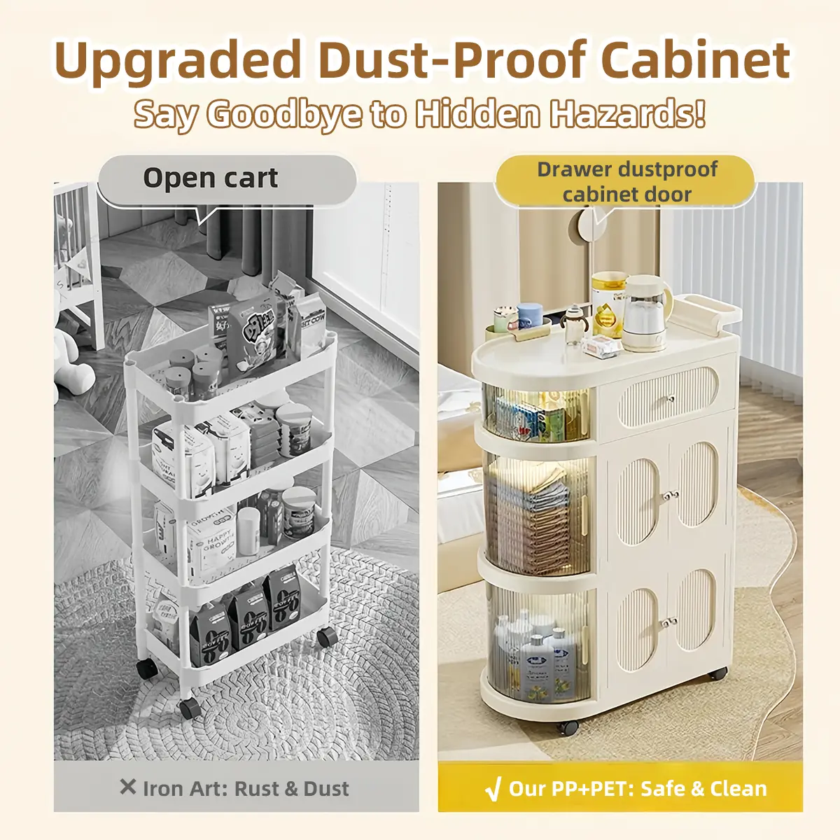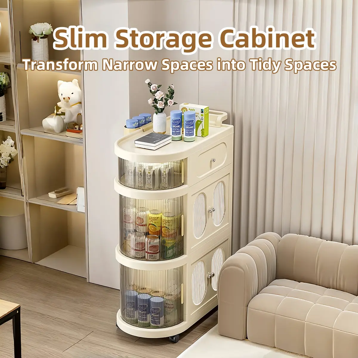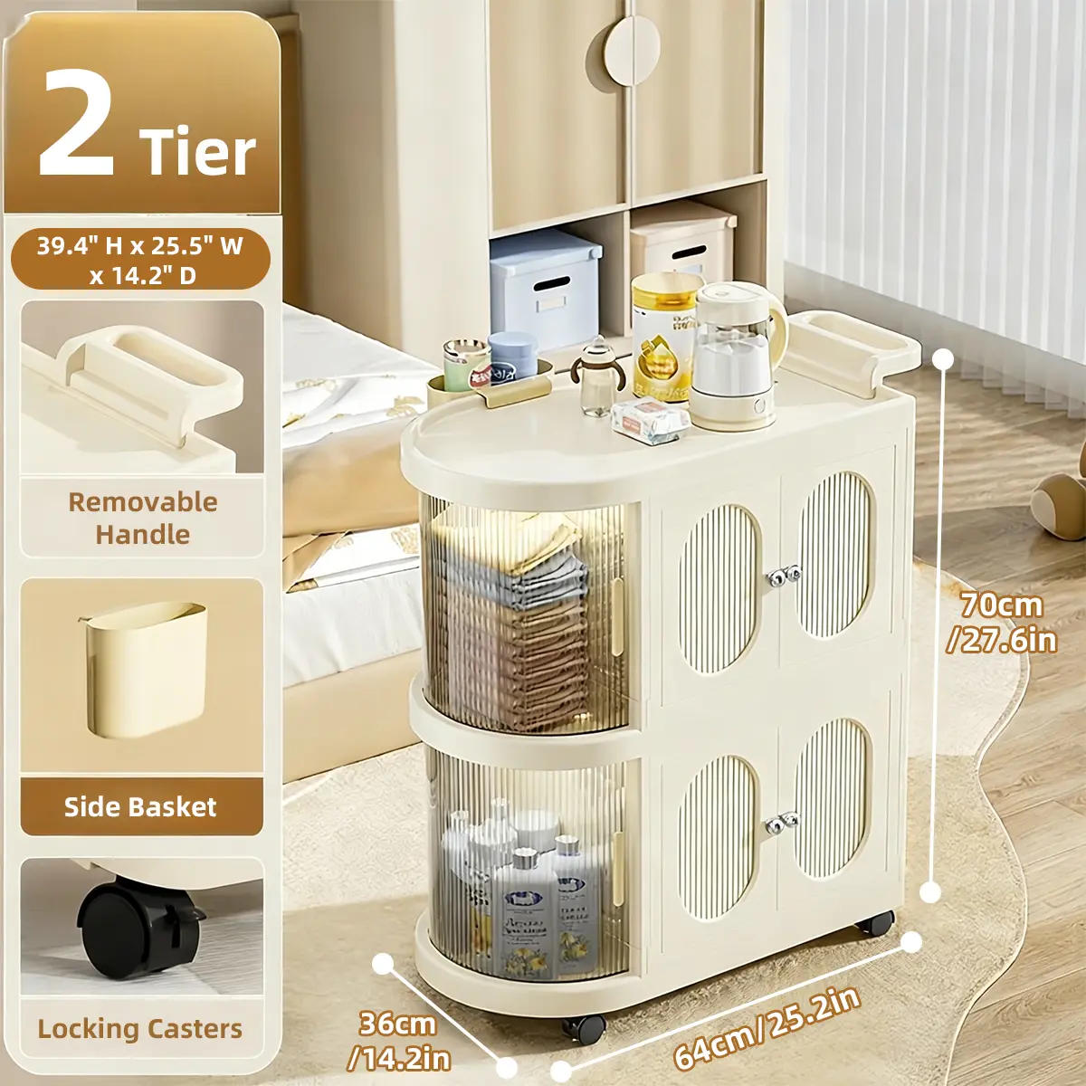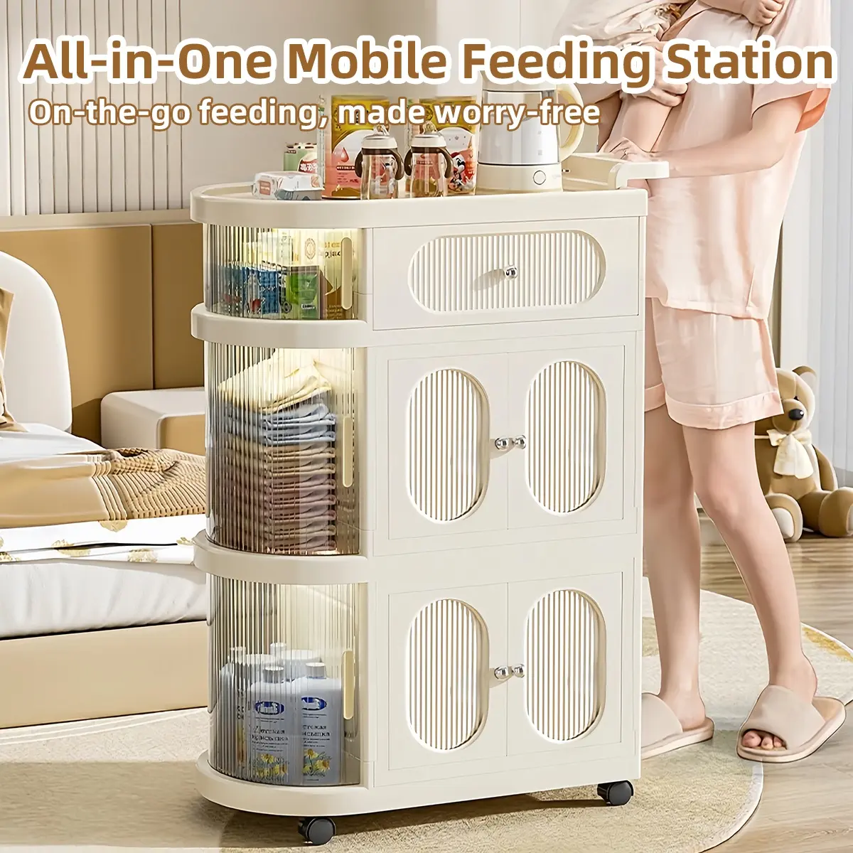 Multi-Layer Slim Storage Cart with Magnetic Doors - Portable Cabinet on Wheels with Handle, Large Capacity Organizer for Toys & Diapers, Foldable Trolley for Kids Room & Hallway, Easy Install Storage System