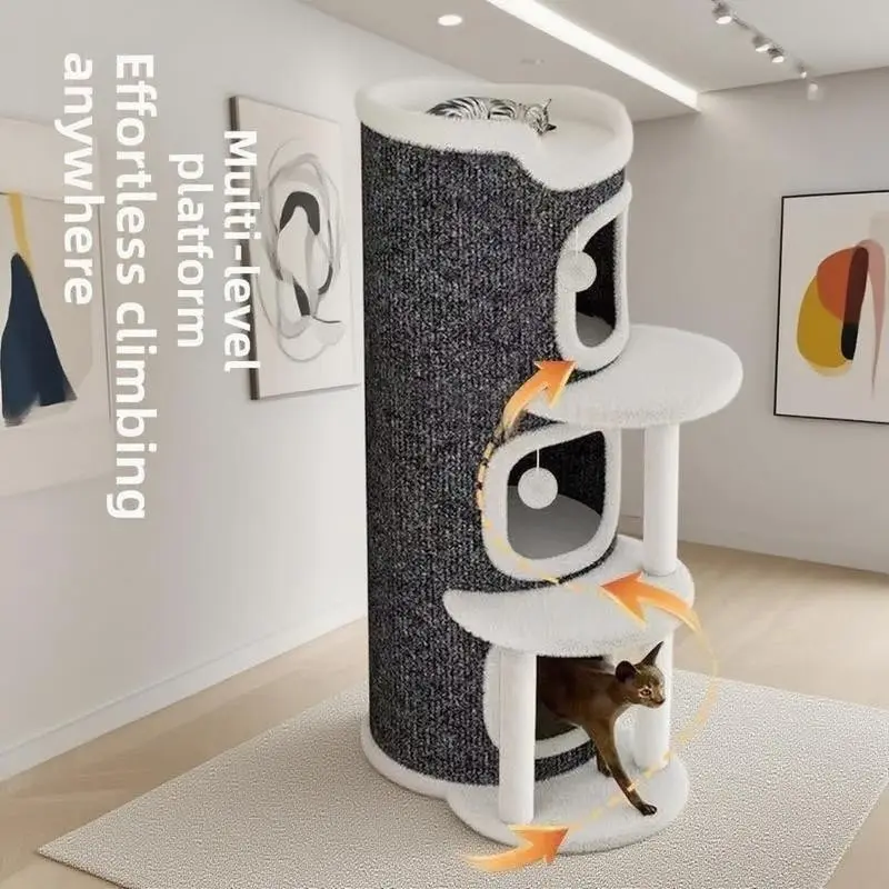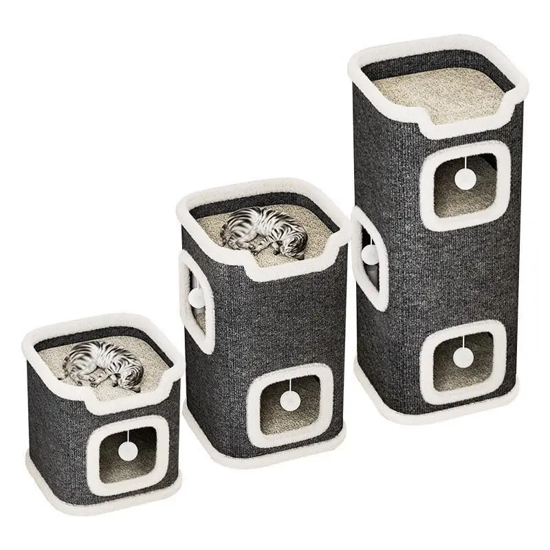 Multi-Level Foldable Cat Tree Towers for Indoor - Cat Furniture, Interactive Hanging Toy Ball, Soft Cozy Top Bed, Cat Tree House, Cat Hideaway, Vertical Scratcher, Scratch-Resistant Design, Christmas, New Year's Gifts for Cats, 3/2/1Tier