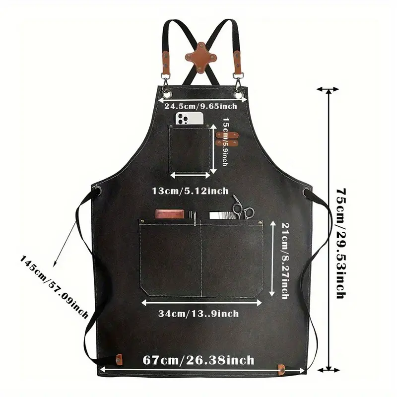 ·Wide Occasions for Use: The cross-back kitchen apron is stylish and perfect for all kinds of work and is ideal for home or studio, garden, or craft table use. Such as woodwork, workshop, mechanic work, metalwork, lathe work, light welding, gardening, painting, and BBQ.