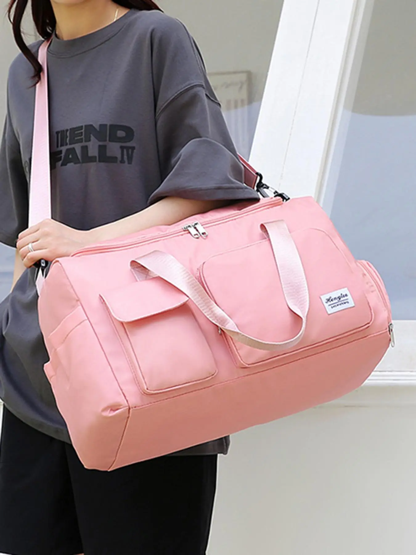 I love this bag I take it as an over night bag..has a pocket at the bottom Can’t really fit my bigger shoes in there. Takes up space inside. I do like all the other small pockets that it has I am able to fill those up with a lot of toiletries …Great product & worth $6 I spent for it.