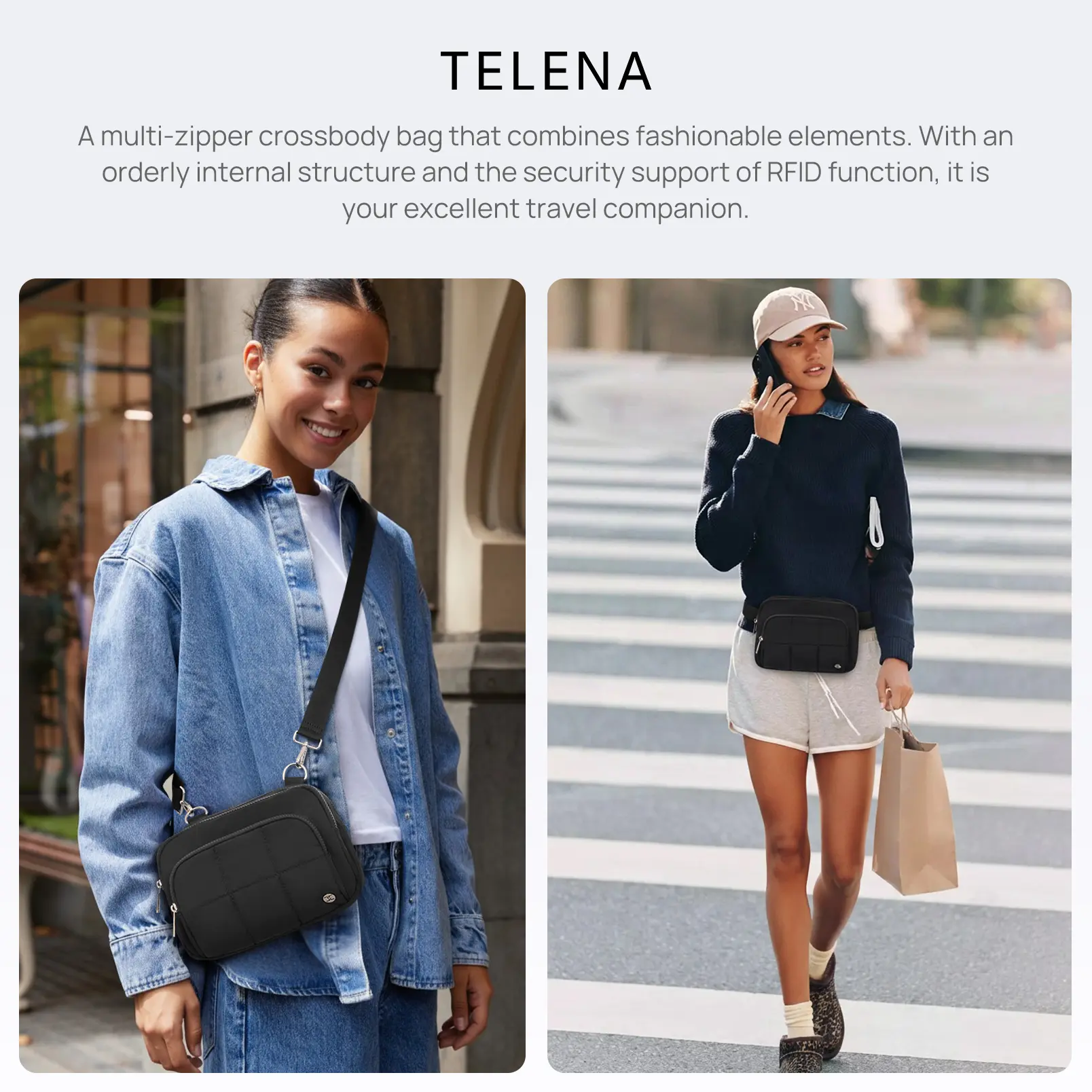·2 Styles in 1 – Crossbody or Waist Pack: Switch up your look in seconds! Adjustable strap (27.55"–49.6") lets you wear it crossbody or as a sporty waist bag—perfect for travel, gym, or daily outings
