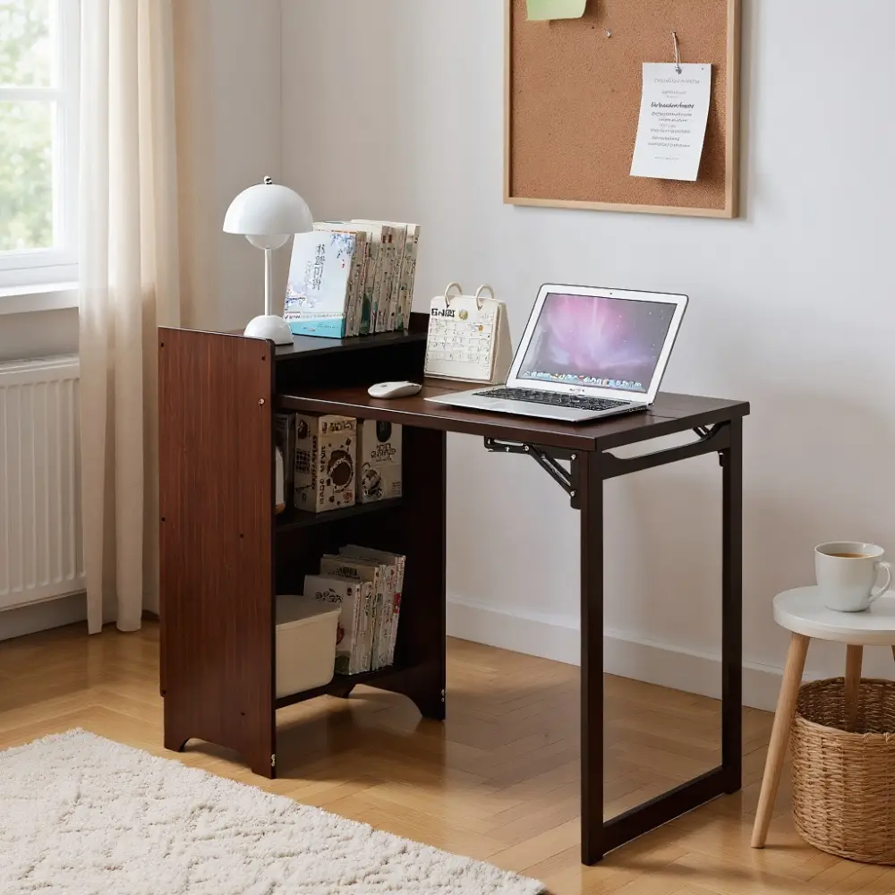 Ample Storage: The bamboo folding desk has a spacious top for lamps, phones, and essentials, plus shelves to store books and other items for a clutter-free workspace.