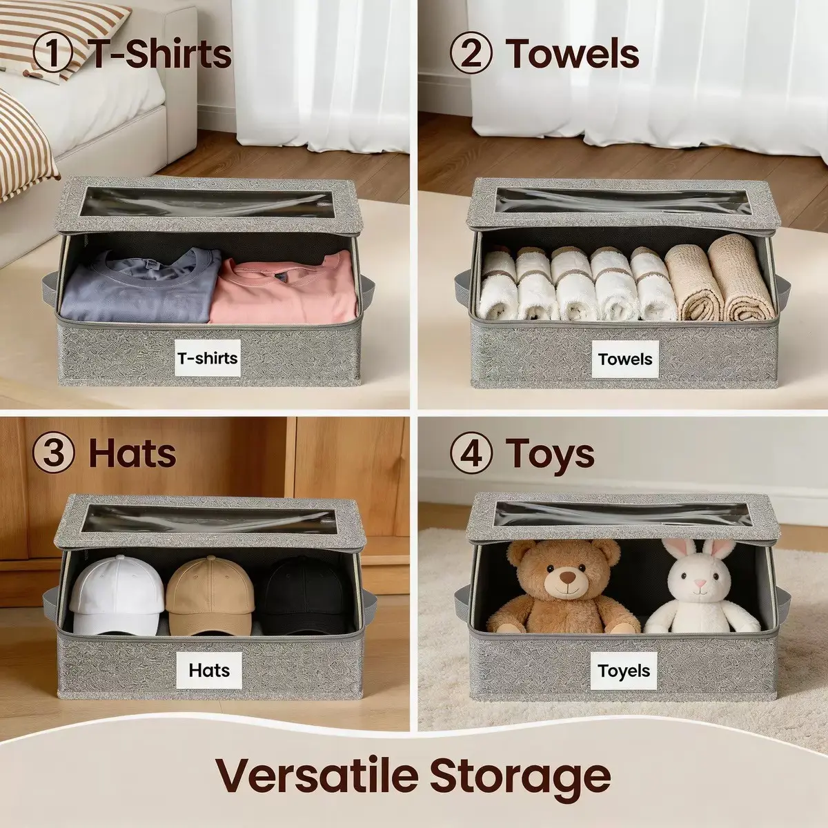 【Gift Box】TRZZ Foldable Bed Sheet Storage Bins 4-Pack | Queen/King Size Oxford Fabric Organizers with Transparent Windows & Reinforced Handles | 15"×13"×5"