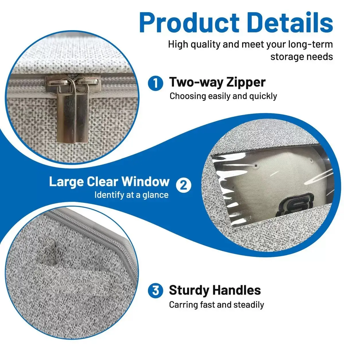 【Gift Box】TRZZ Foldable Bed Sheet Storage Bins 4-Pack | Queen/King Size Oxford Fabric Organizers with Transparent Windows & Reinforced Handles | 15"×13"×5"