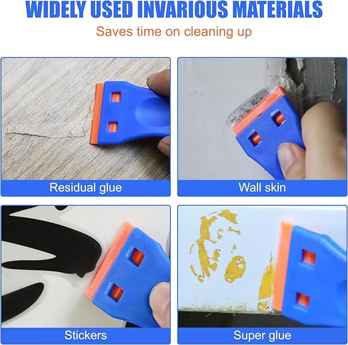 This scraper tool is great for multiple surfaces like glass, car, windows, and caulk. It helps in effectively removing stickers and decals without leaving any marks. The set is a must-have for maintaining cleanliness and order in various settings.
