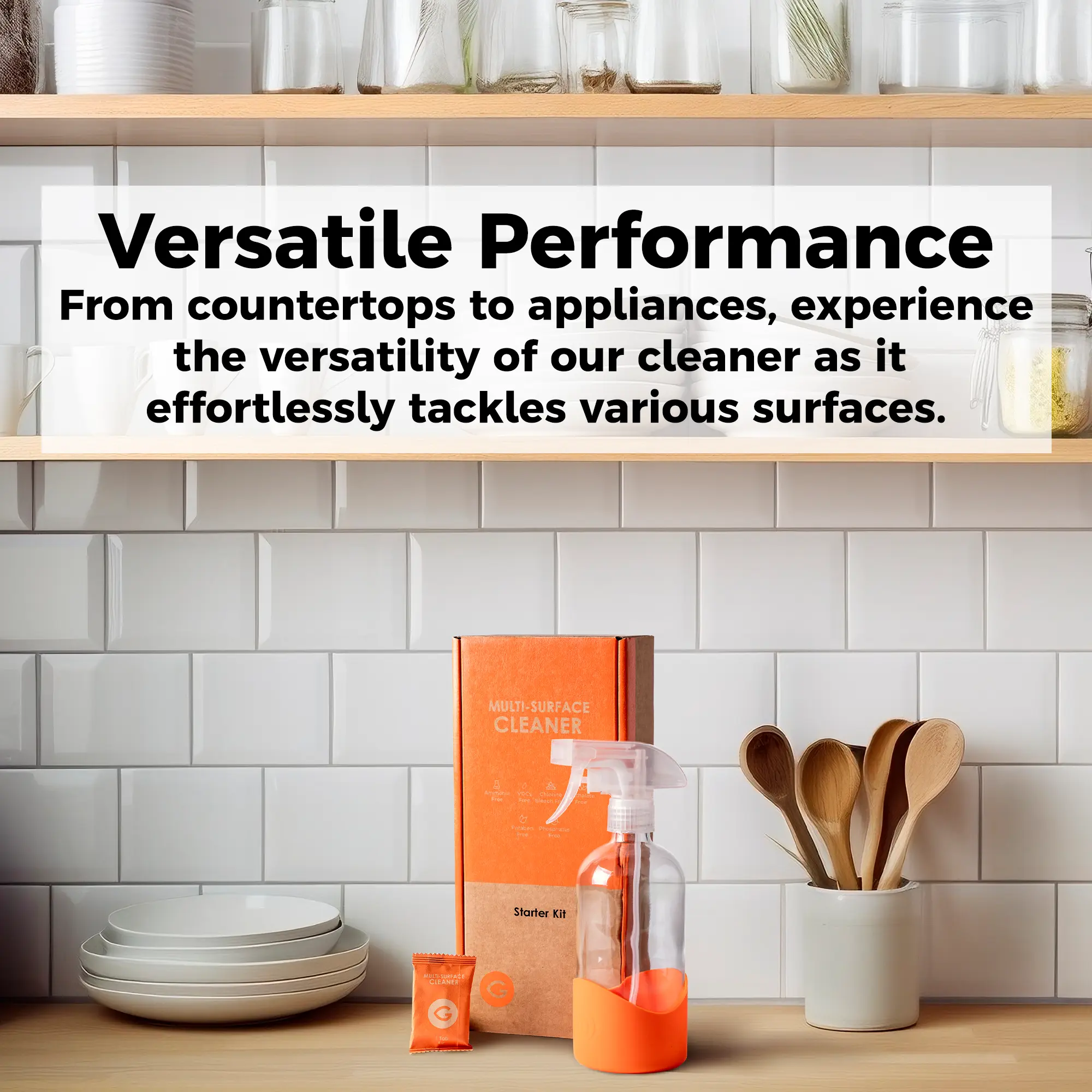The multi-surface cleaner is suitable for a wide range of surfaces, including countertops, tiles, appliances, and more. With our concentrated tablets, you'll be able to make multiple bottles of cleaning solution, saving you money in the long run.