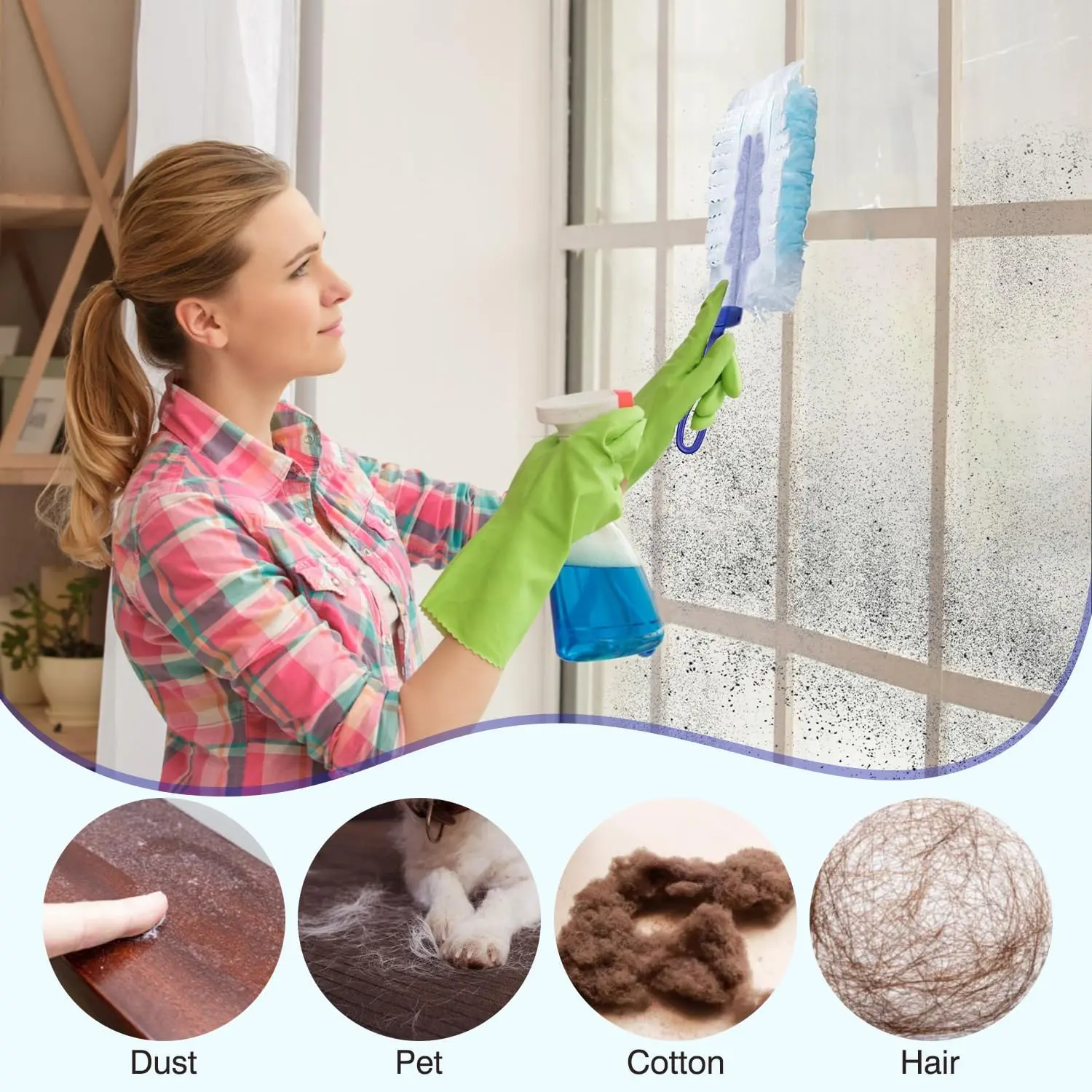 Superior Dusting Efficiency: The fluffy fiber head of the duster core has a strong electrostatic dust removal ability, the dusting capacity is three times greater than traditional vacuum cloths, easily removing dust, hair, crumbs and pet hair everywhere