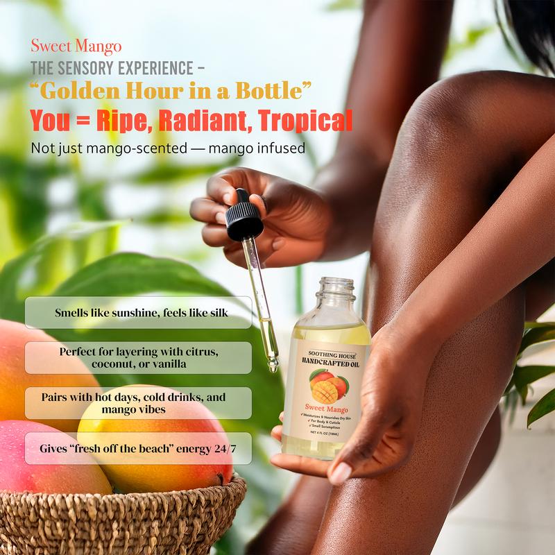 Soothing house oils are moisturizing, absorbing to your skin, the scent are spot on. Sweet Mango is juicy after the dry down😍