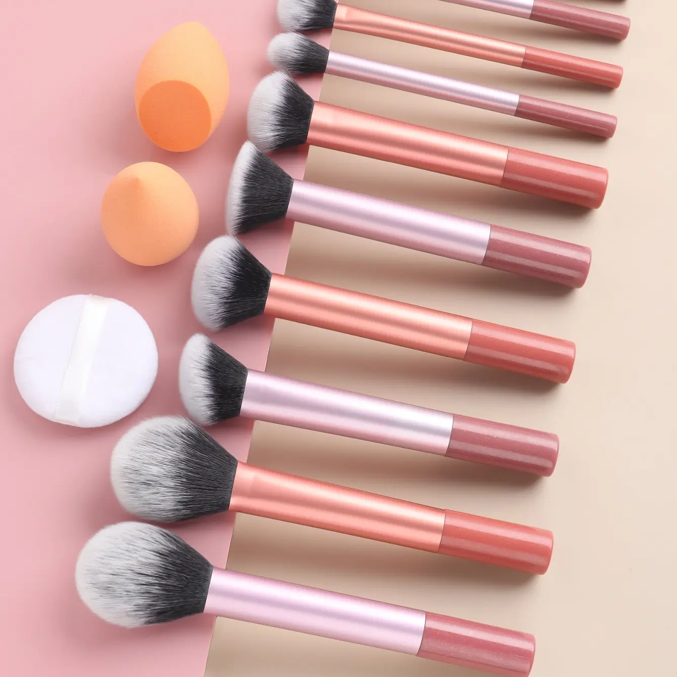 This 12-piece set includes essential brushes for foundation, blush, contour, highlighter, concealer, eye detailing, and more. It also comes with a soft beauty sponge and powder puff, perfect for blending and setting your look with precision.